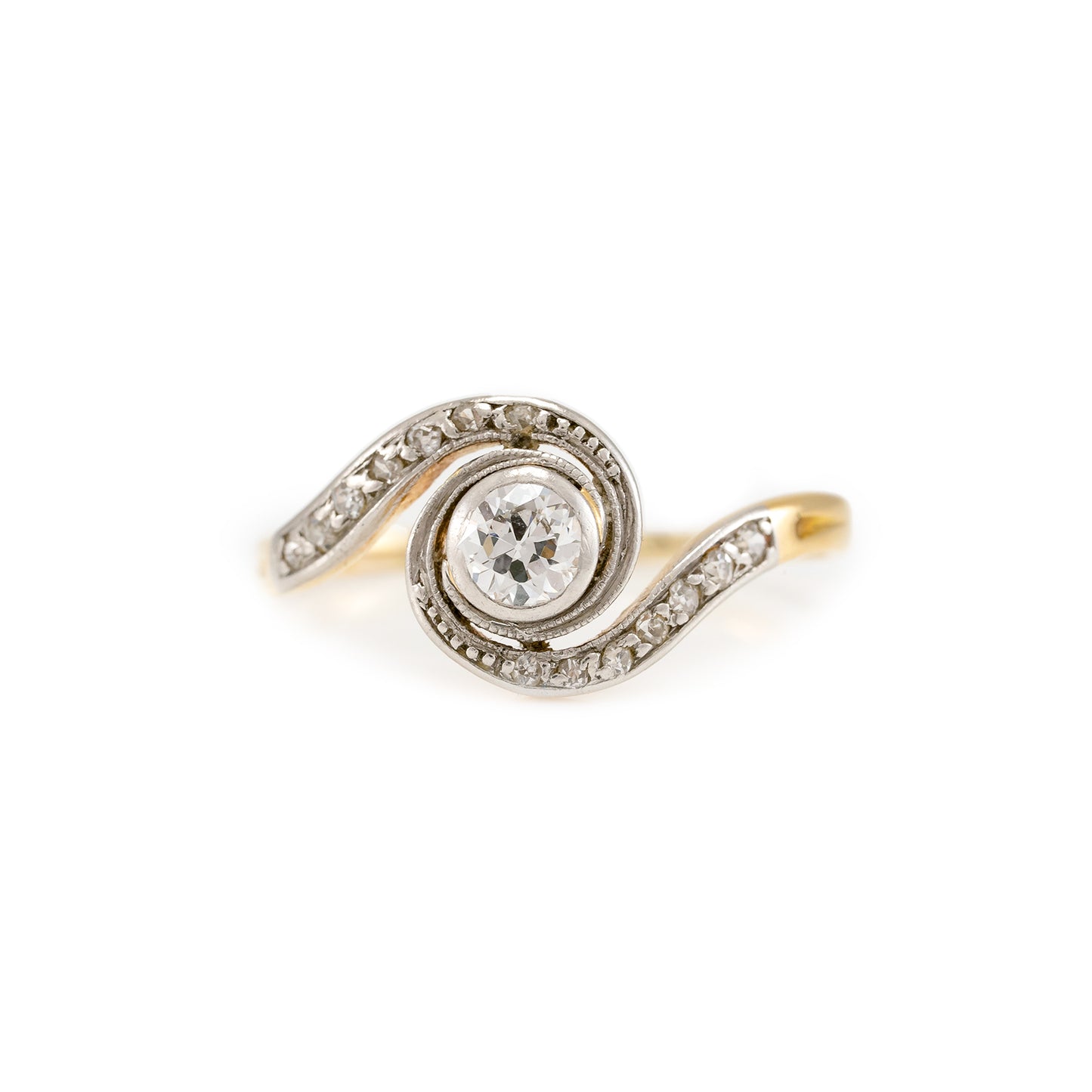 Art Deco diamond ring yellow gold 14K platinum 610 women's ring brilliant ring gold ring