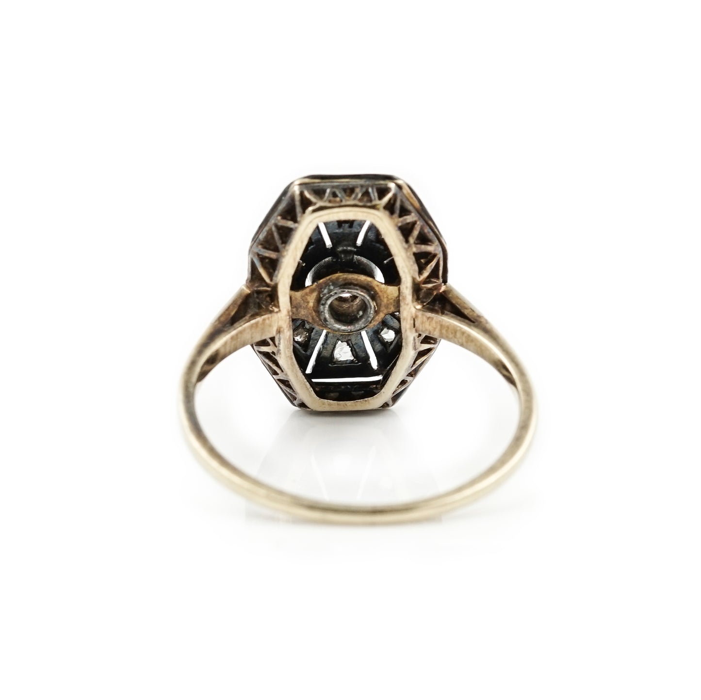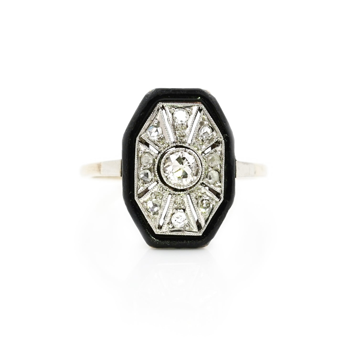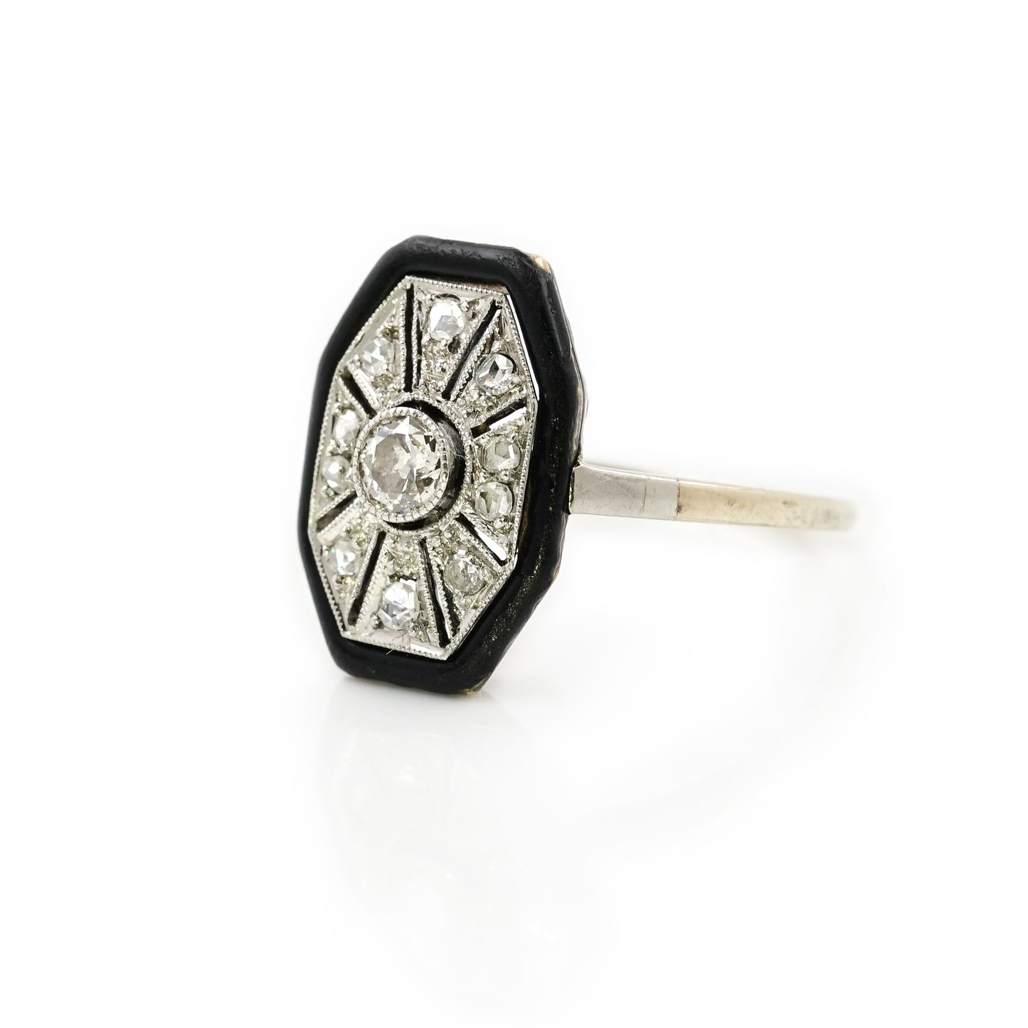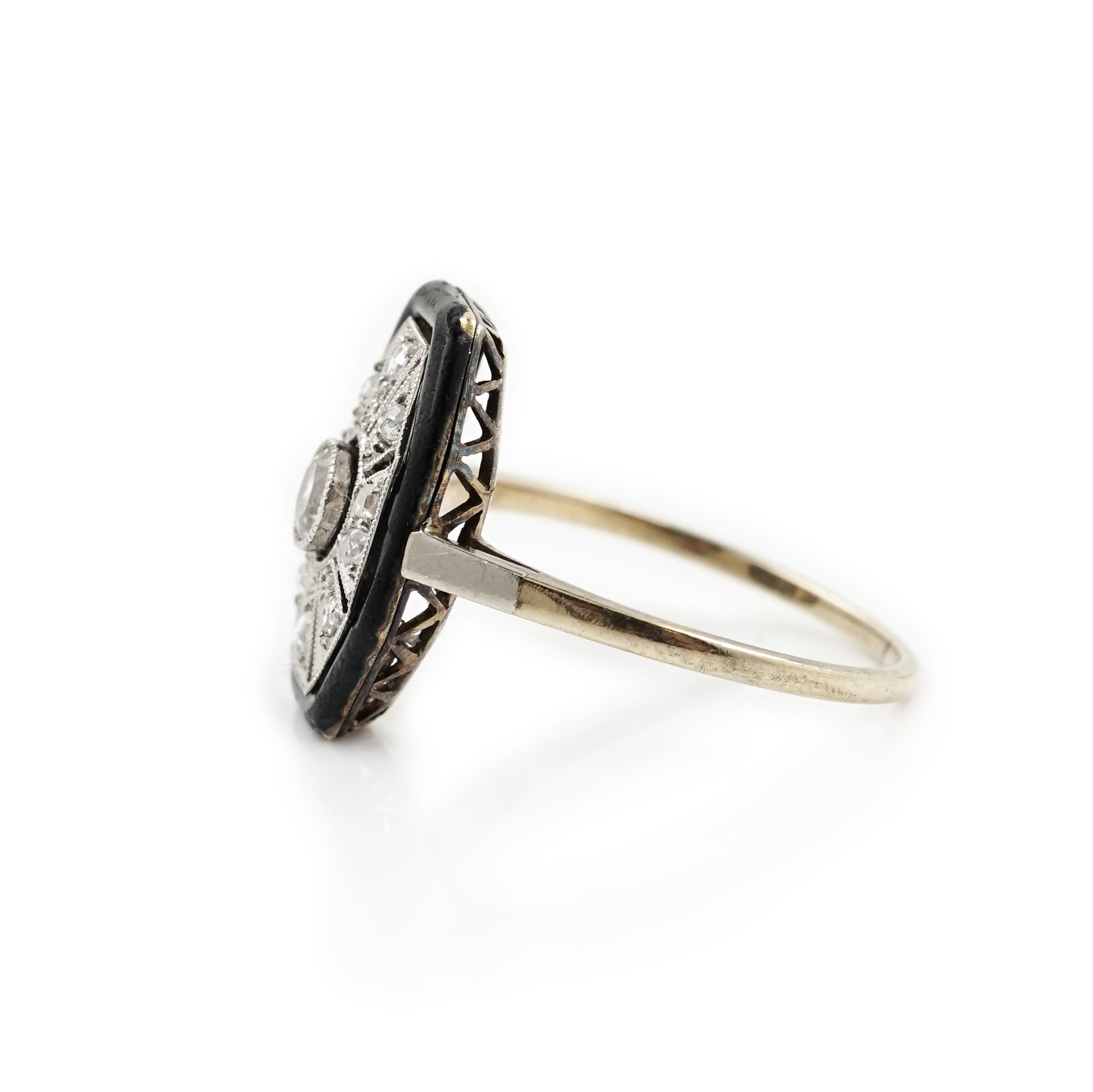 Art Deco gold ring old cuts diamonds 0.4ct gold platinum enamel women's ring