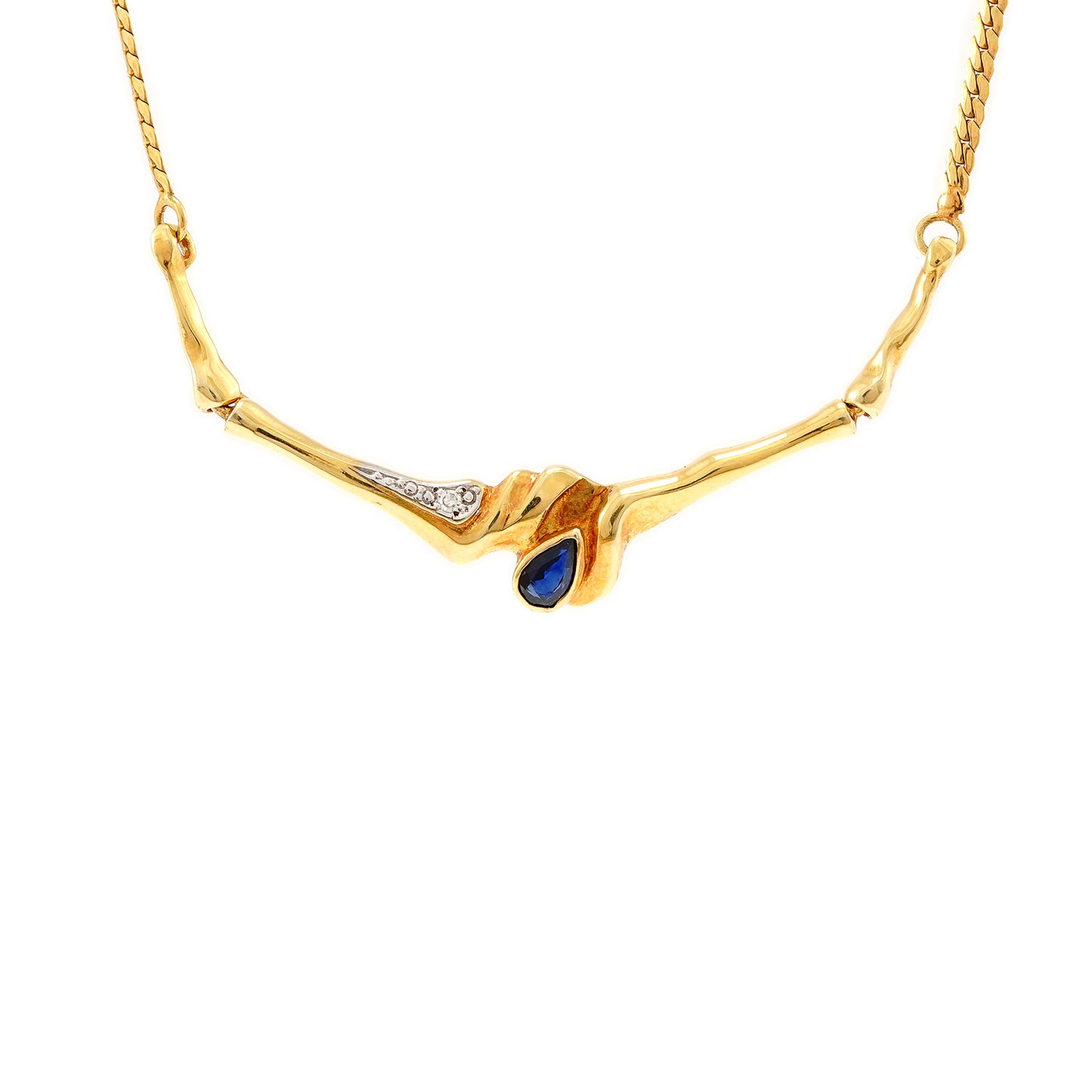 Necklace sapphire diamond brilliant yellow gold 585 14K women's jewelry necklace gold chain