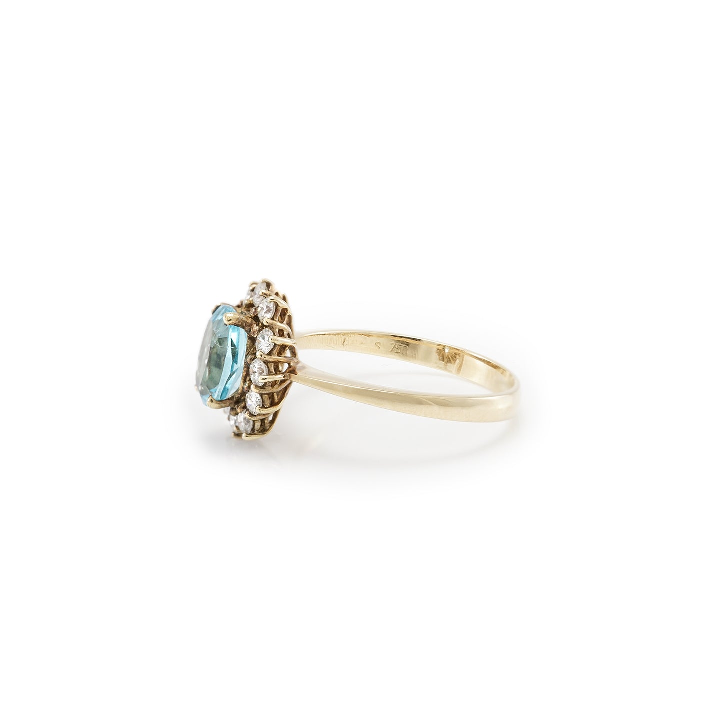 Women's ring aquamarine diamonds 18K gold diamond ring engagement ring RW59