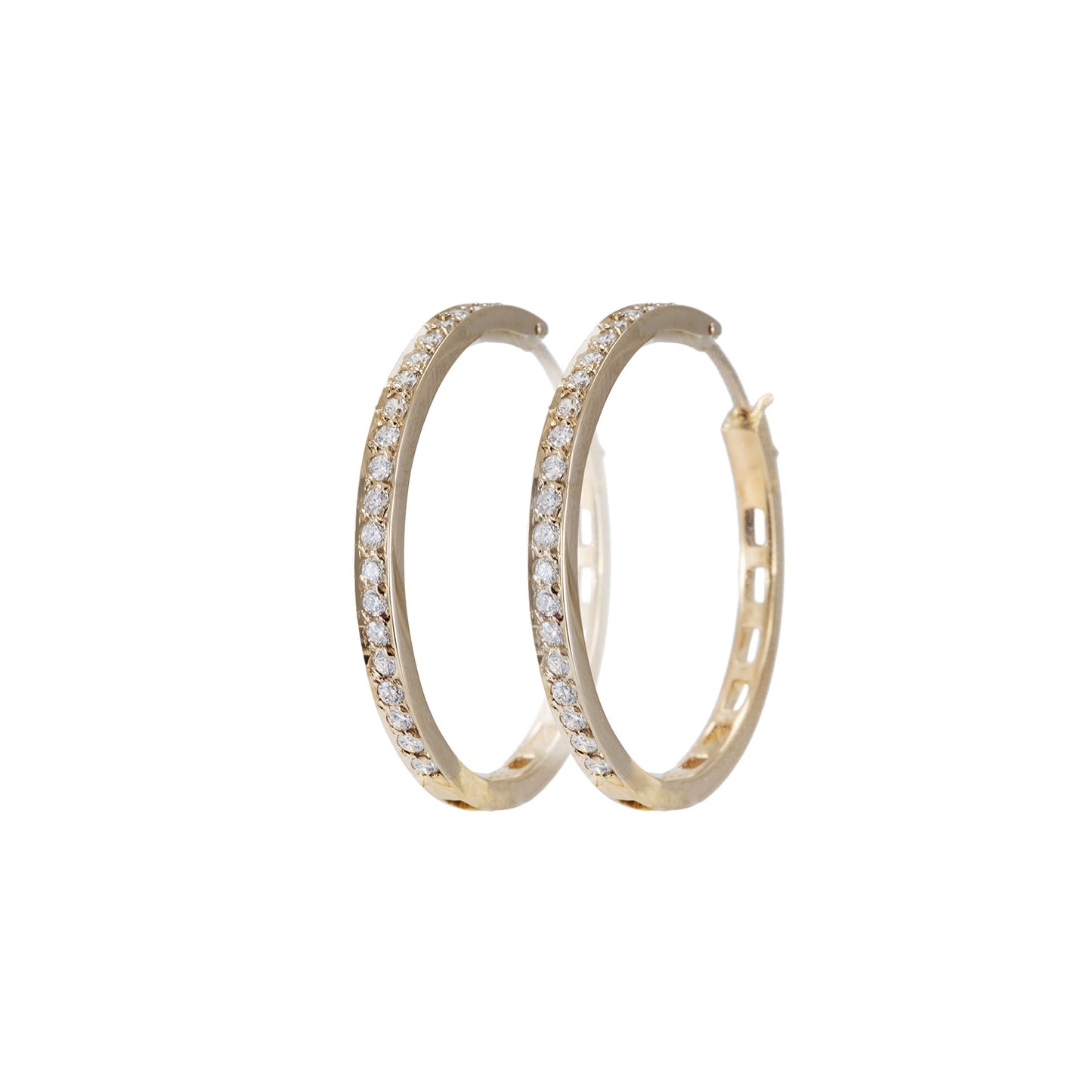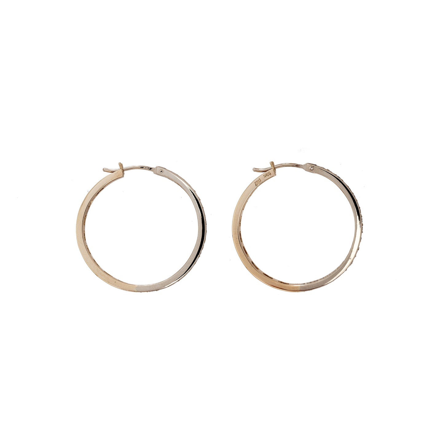 Diamond hoop earrings bail 29mm yellow gold white gold 14K women's jewelry diamond earrings
