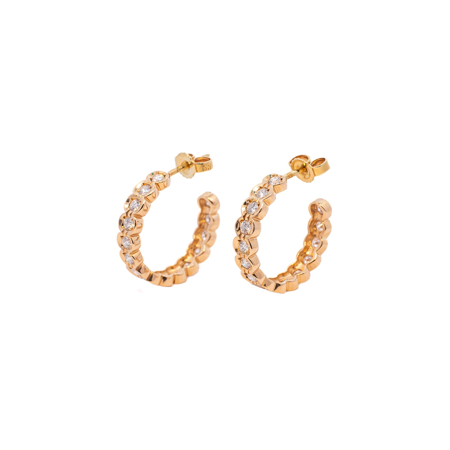Diamond Earrings Memory Hoops Yellow Gold 585 14K Stud Women's Jewelry