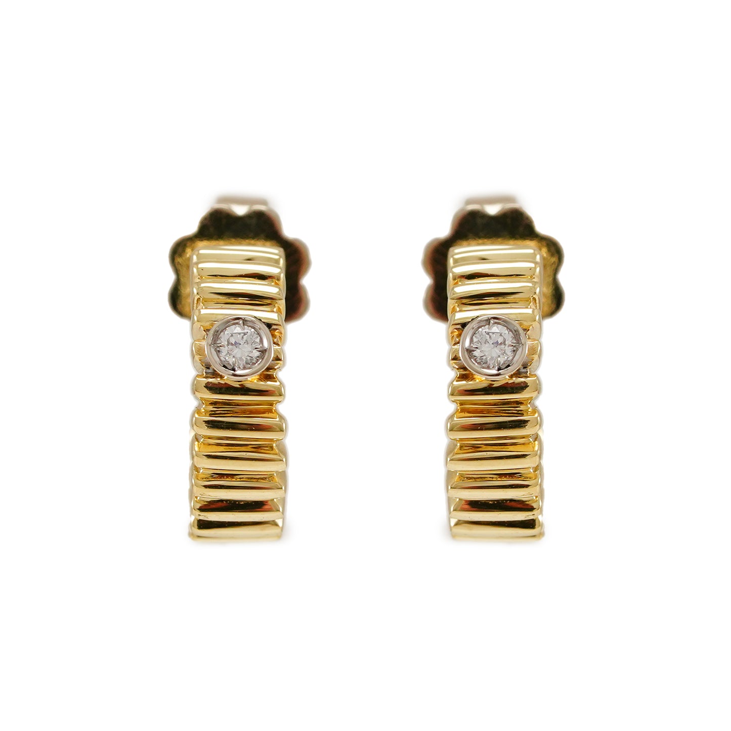 Diamond earrings plug yellow gold 14K women's jewelry half hoop gold earrings
