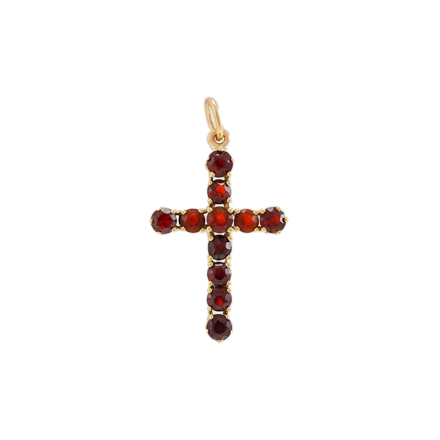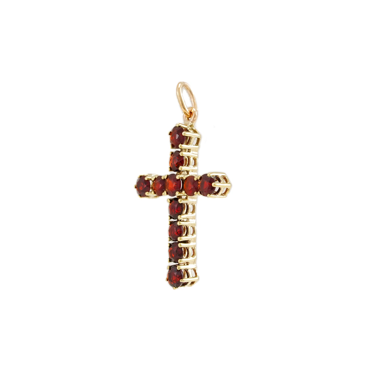 Gemstone pendant cross garnet yellow gold 8K women's jewelry men's jewelry