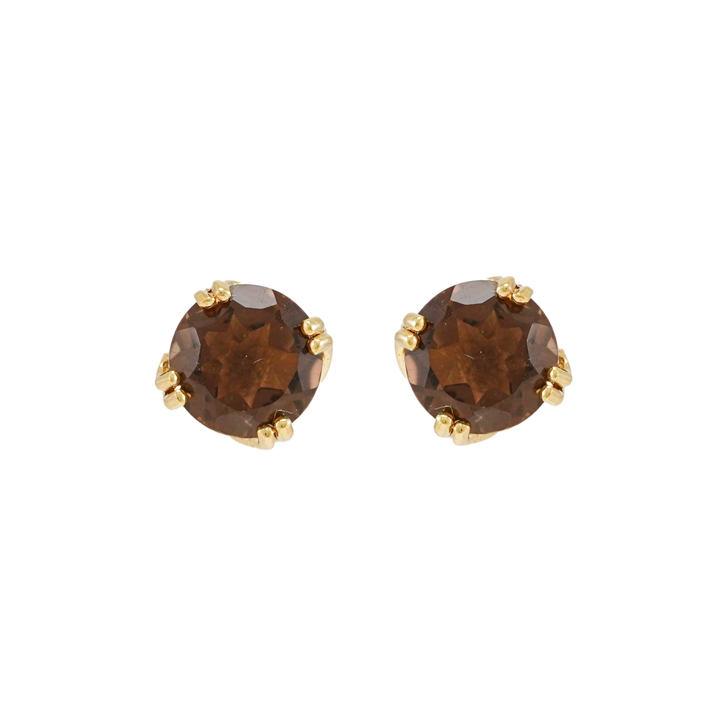 Gemstone earrings smoky quartz plug yellow gold 9K women's jewelry gold earrings