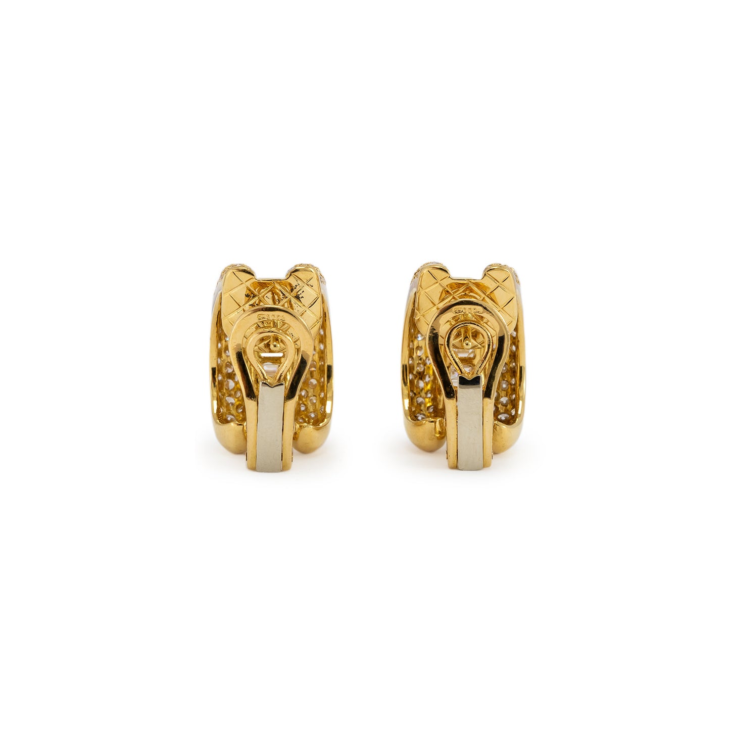 Elegant diamond earrings omega clasp yellow gold 18K 750 set hoop earrings
