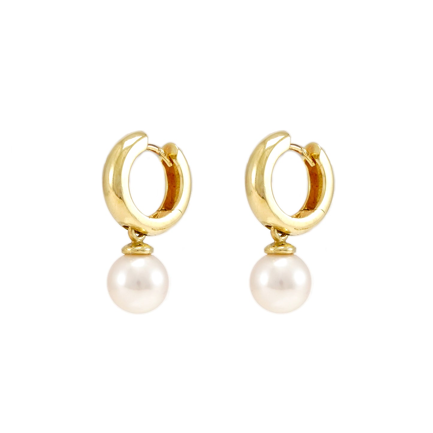 Elegant pearl earrings hoop earrings yellow gold 14K women's jewelry gold earrings earrings