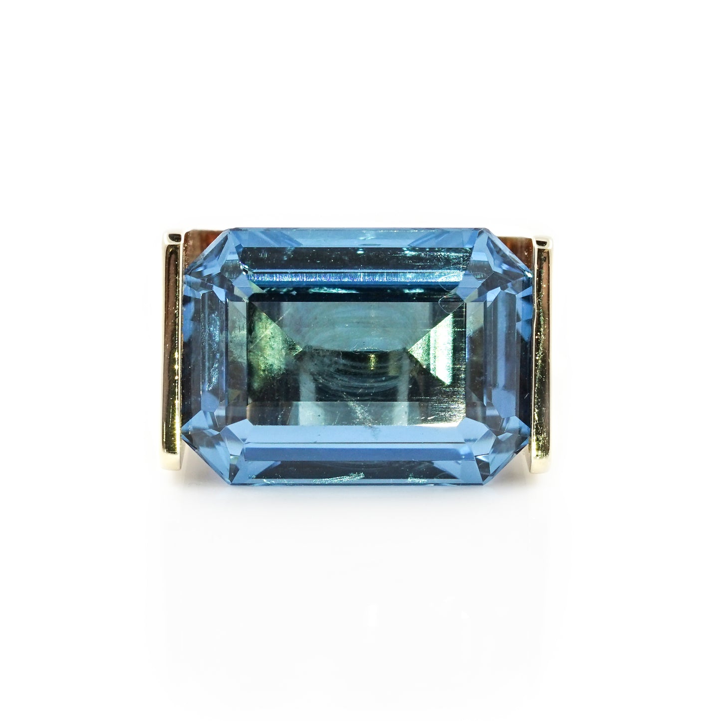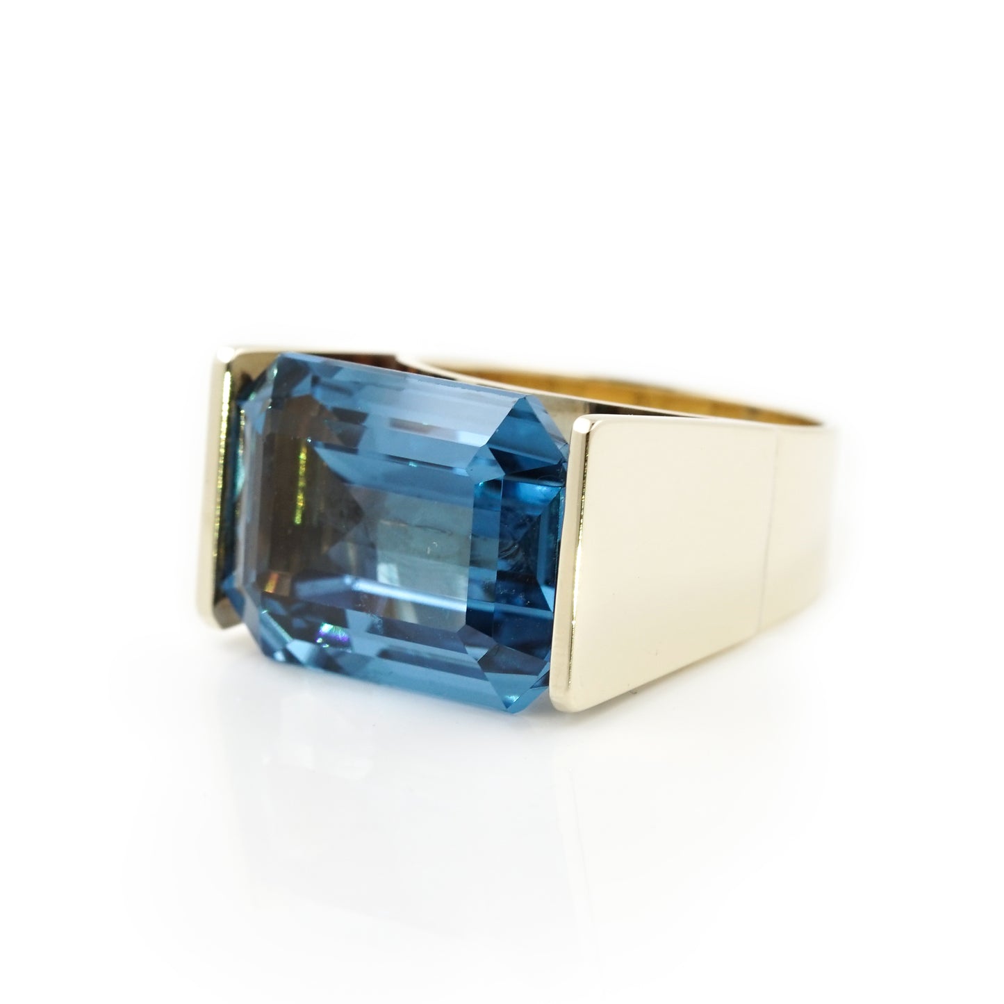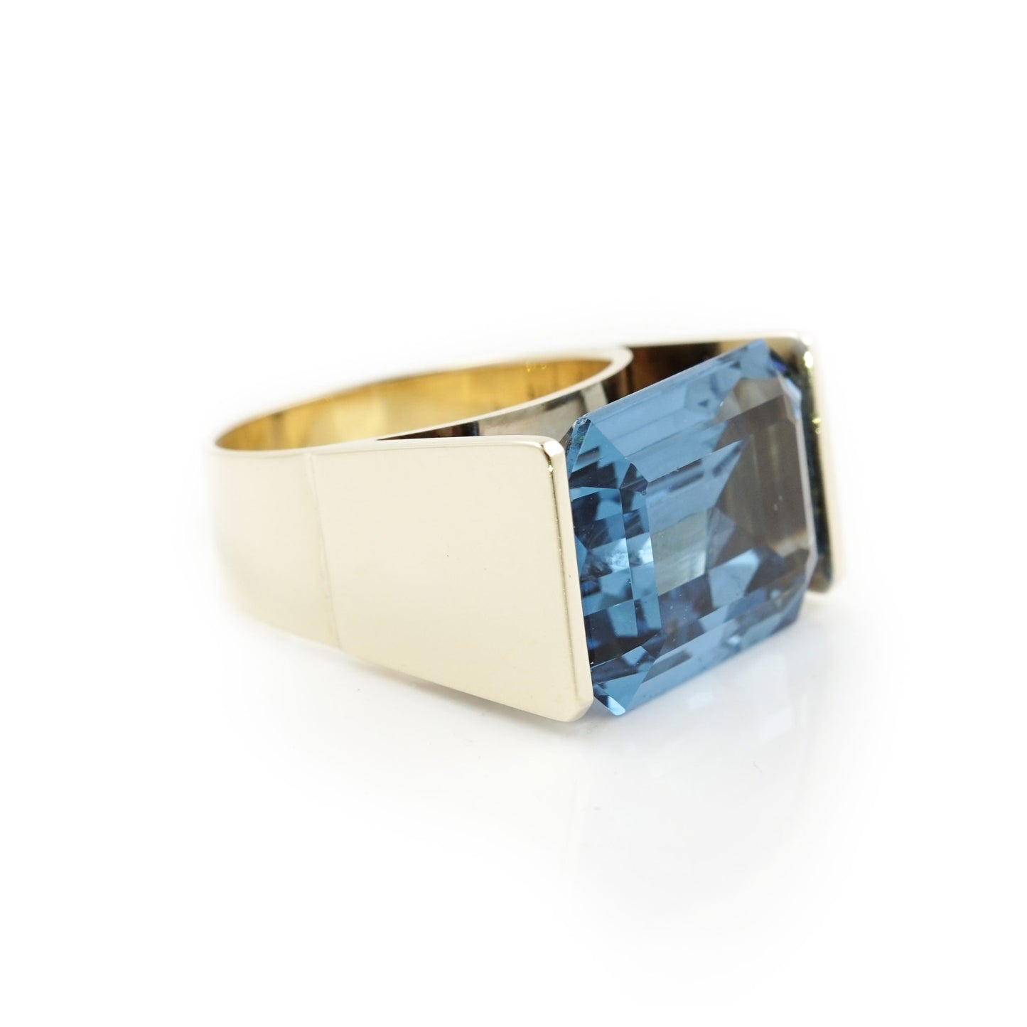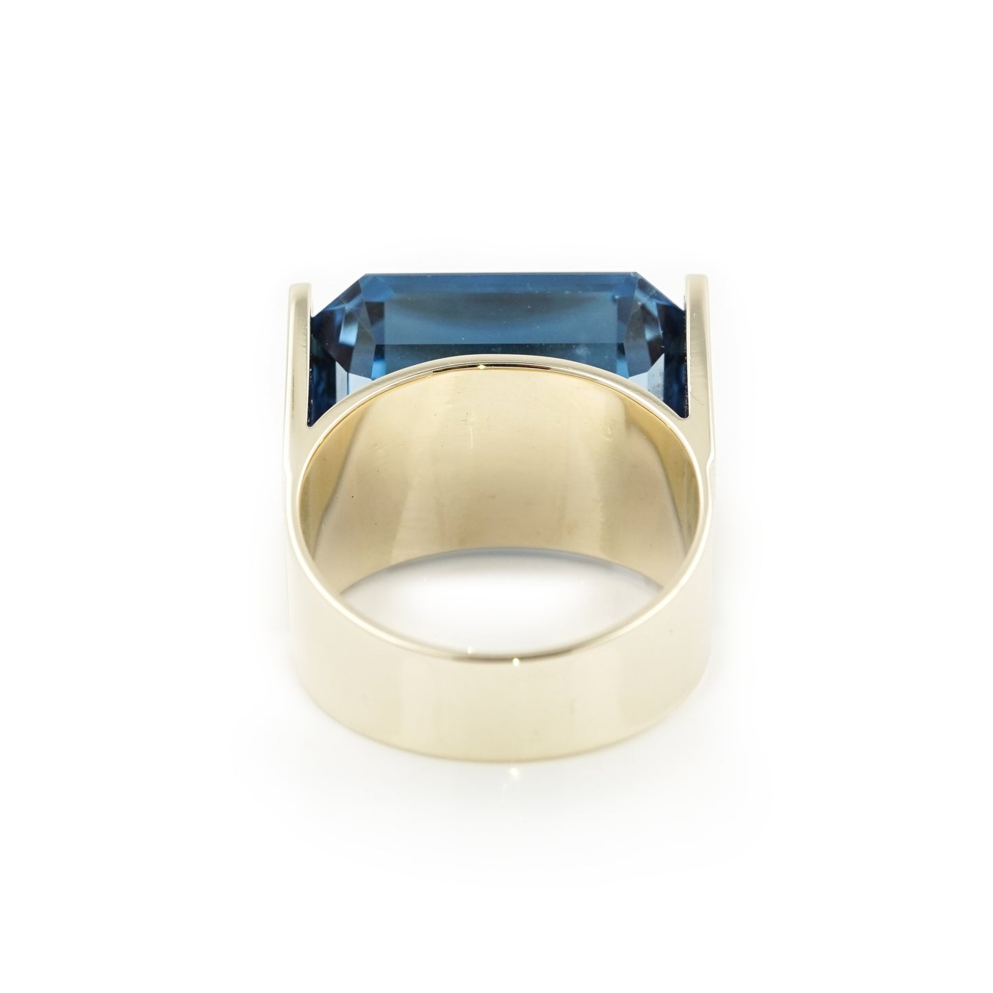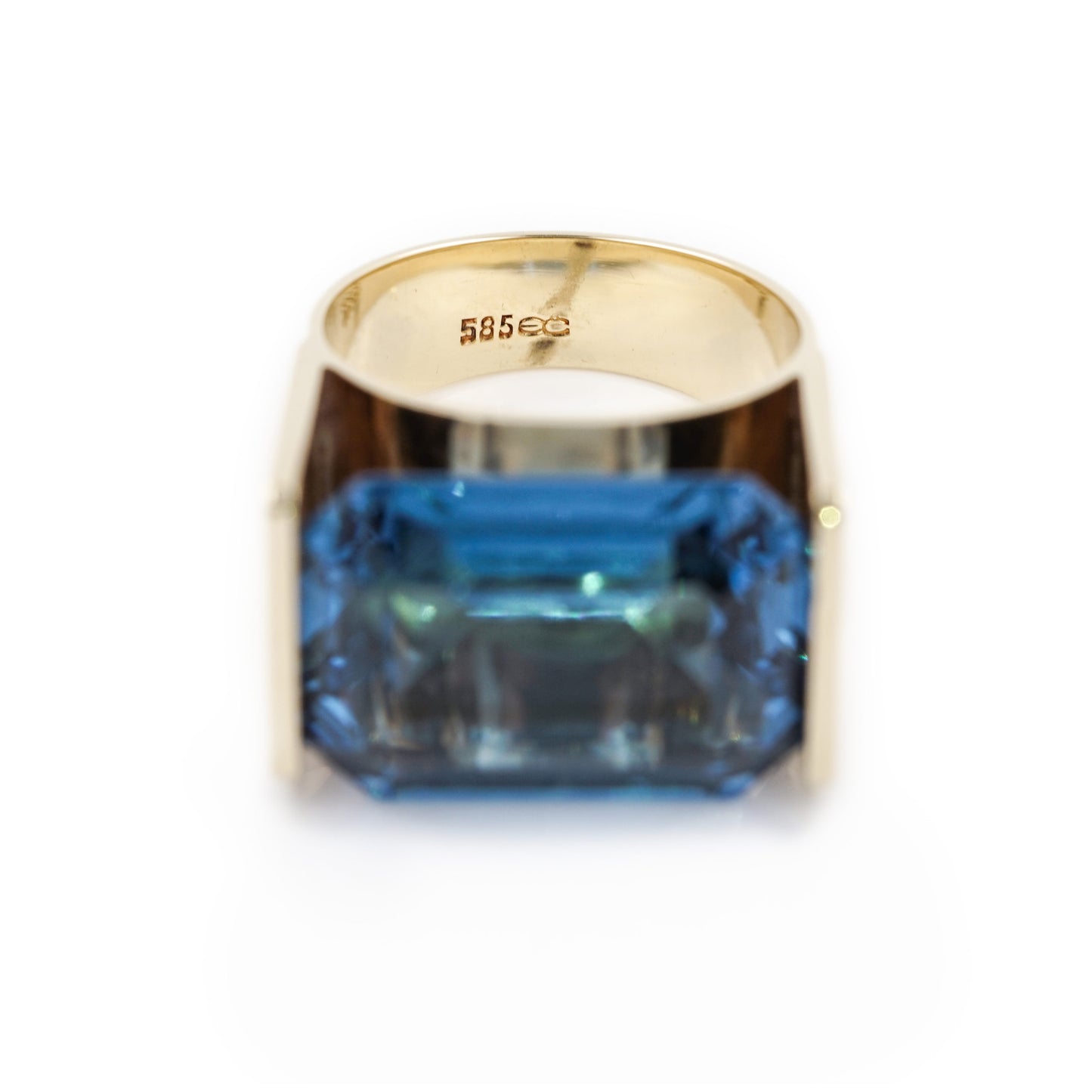 Elegant solid ring yellow gold 14ct blue topaz 585 14K RW55 women's jewelry gold ring blue