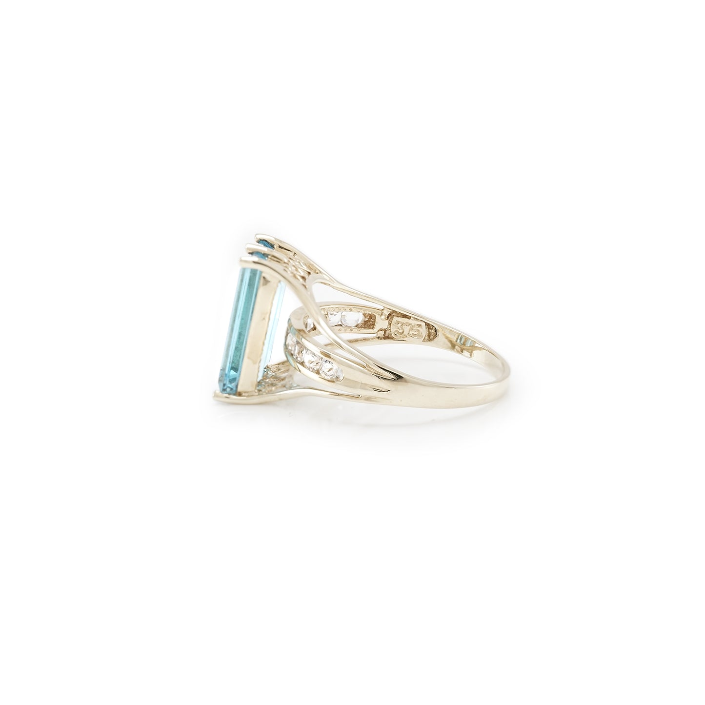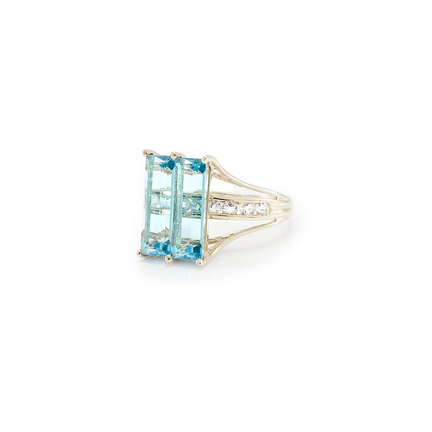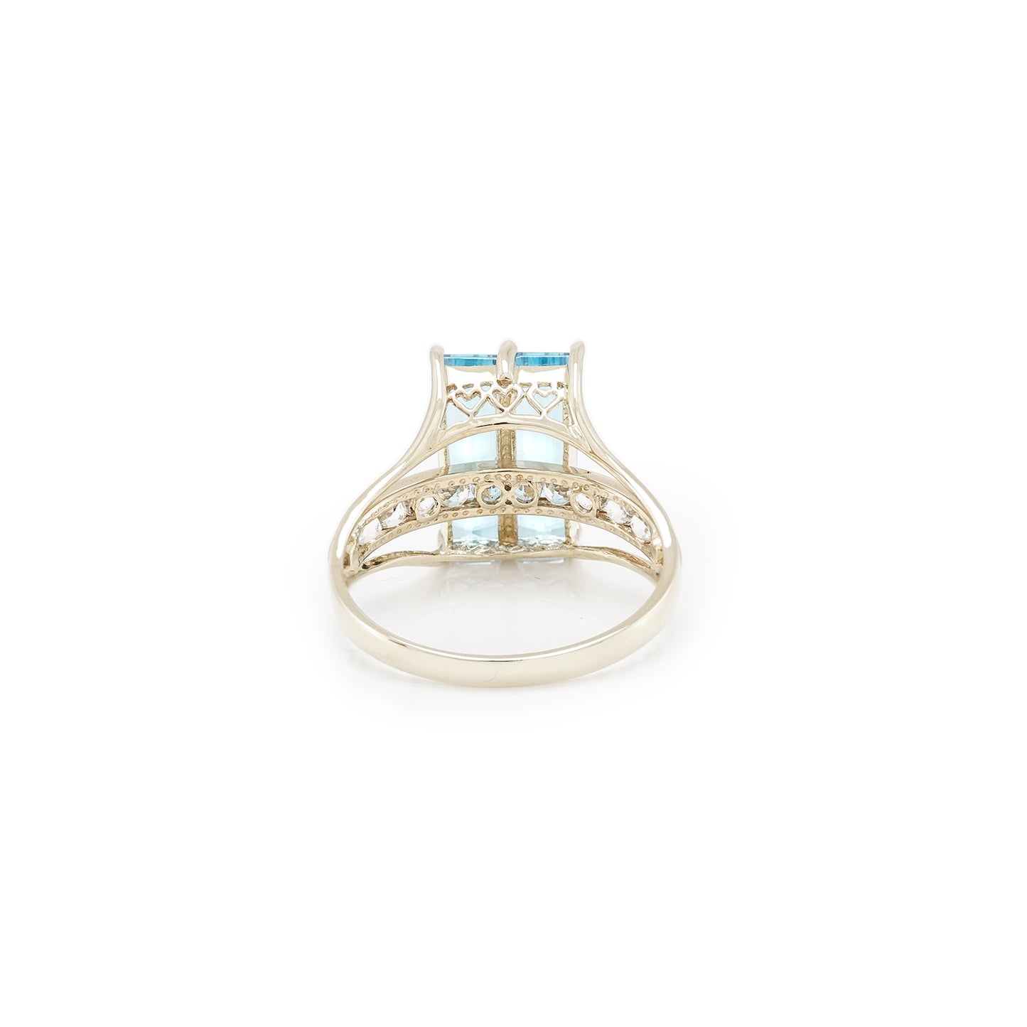 Yellow gold ring blue topaz zirconia unusual extra large women's jewelry 375 9K RW67