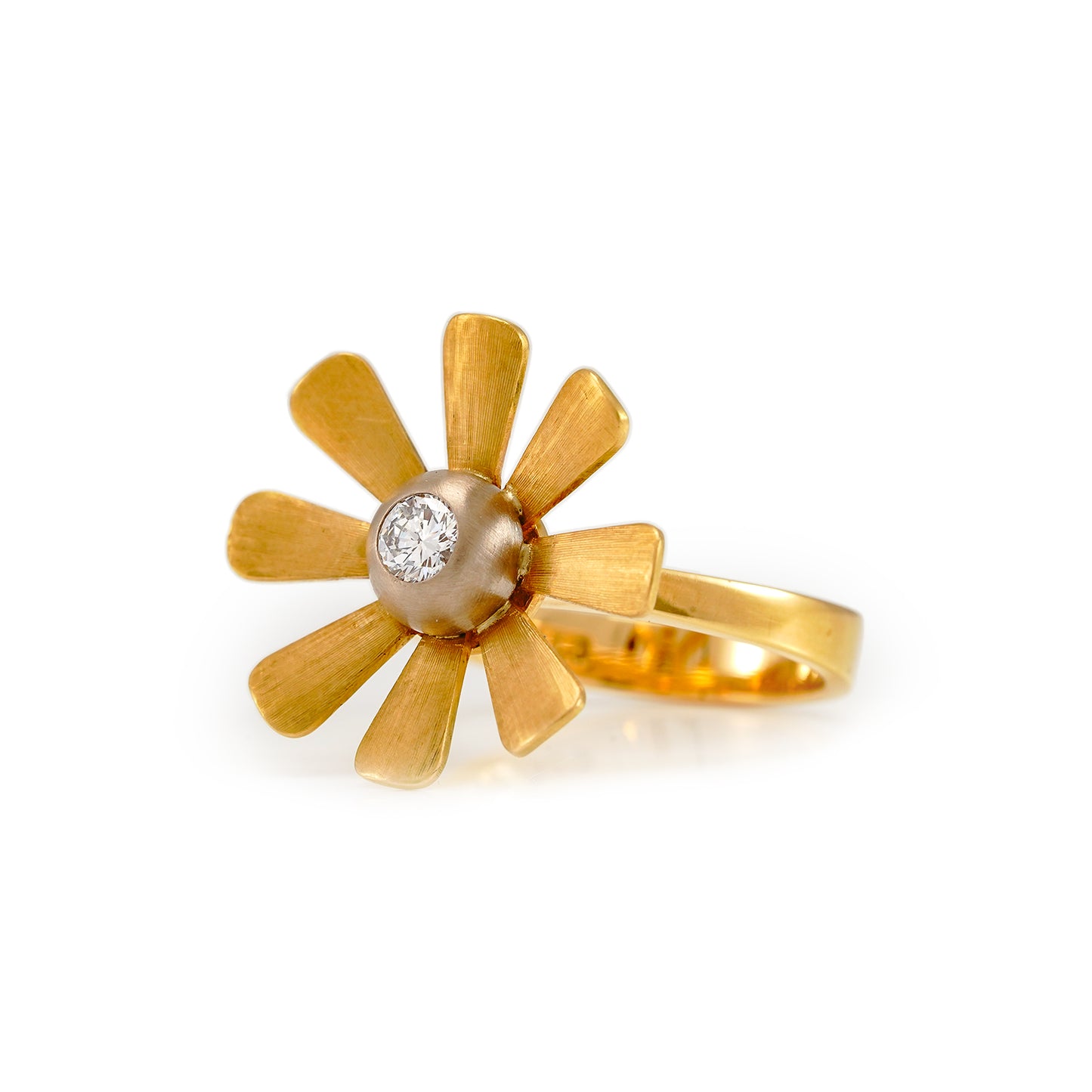 Gold ring with diamond bicolor diamond ring flower 750 gold yellow gold white gold 18K women's jewelry set