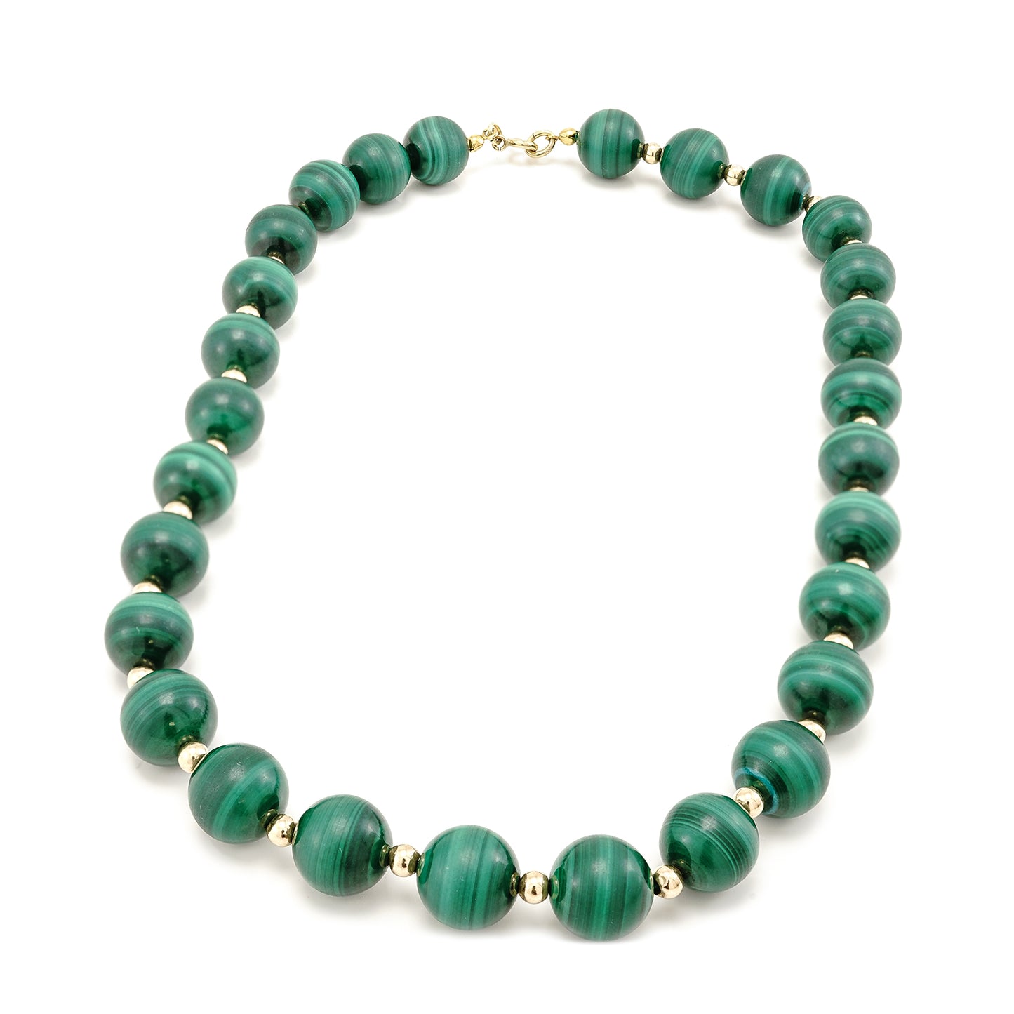 Malachite necklace necklace yellow gold 585 14K 45cm women's jewelry gemstone necklace 97.9g