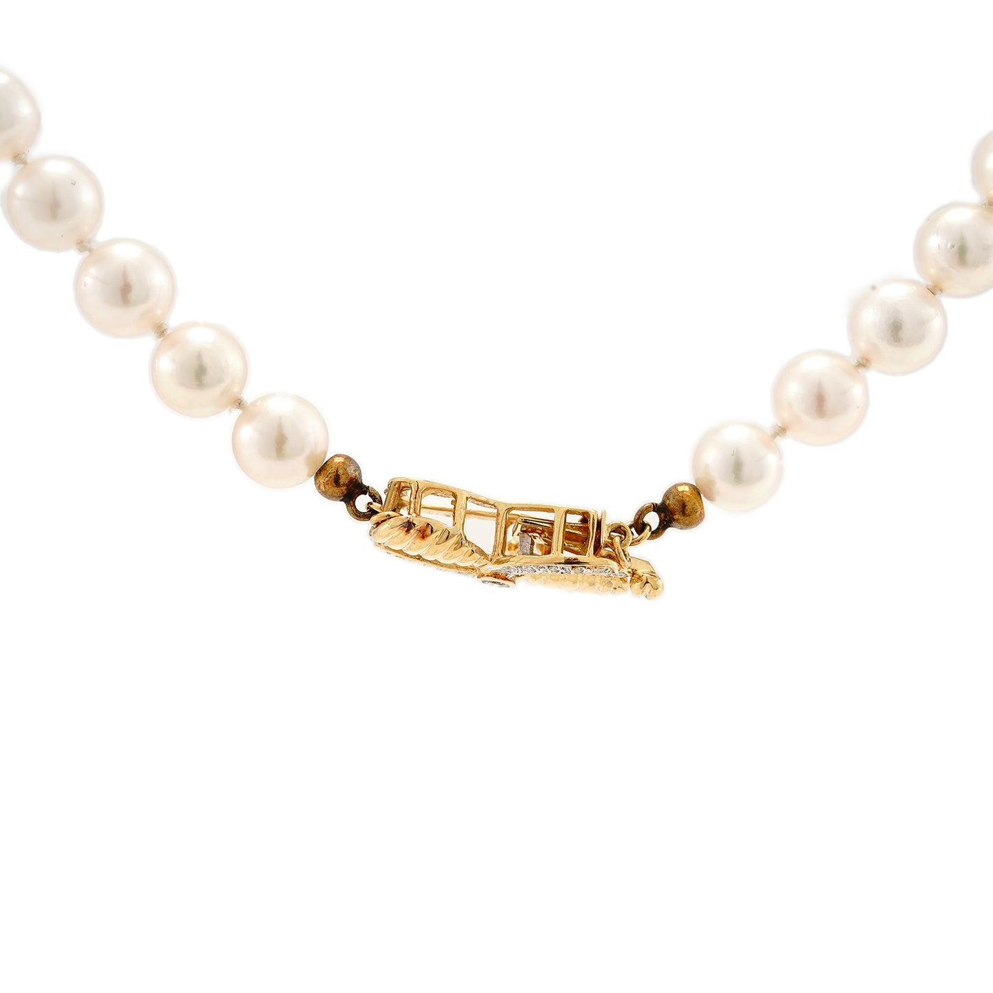 Pearl necklace with jewelry clasp and diamond in yellow gold 750 18K pearl necklace
