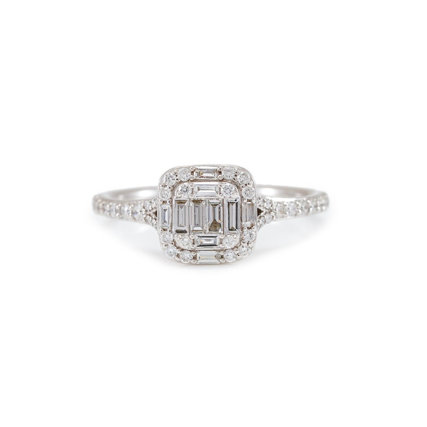 Engagement ring diamond baguette white gold 18K women's jewelry women's ring gold ring