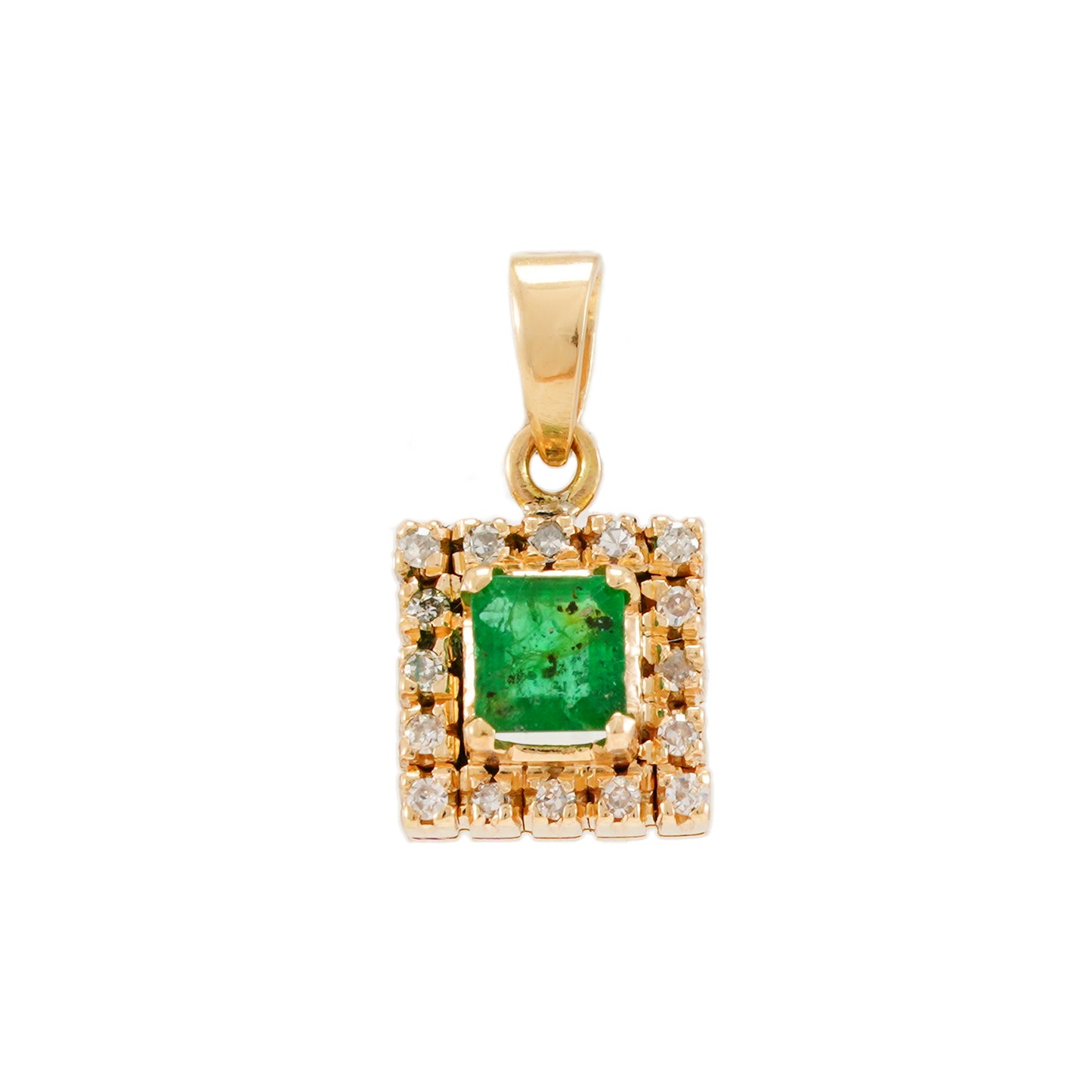 Vintage pendant emerald diamond yellow gold 14K women's jewelry necklace pendant gemstone