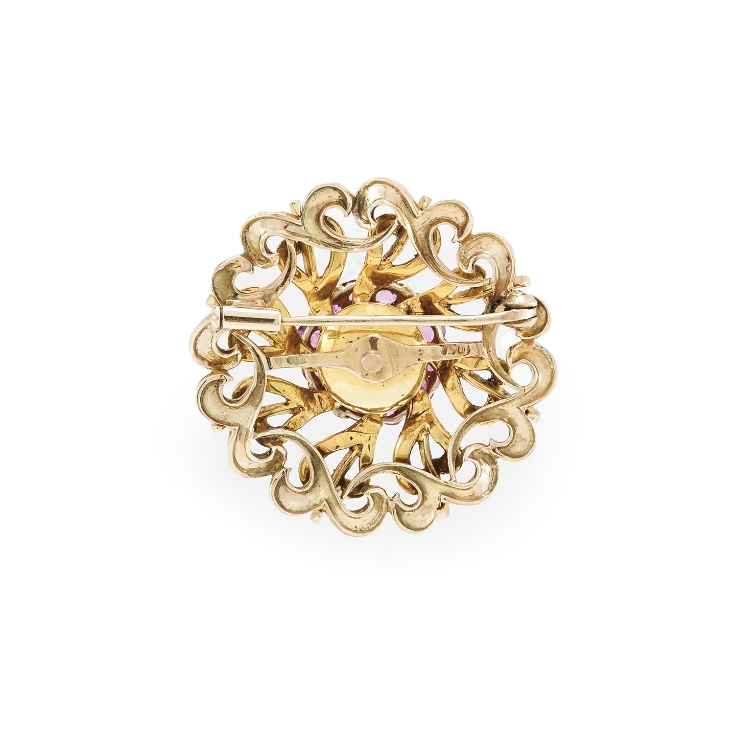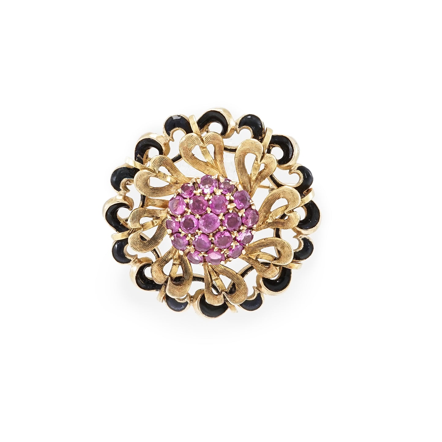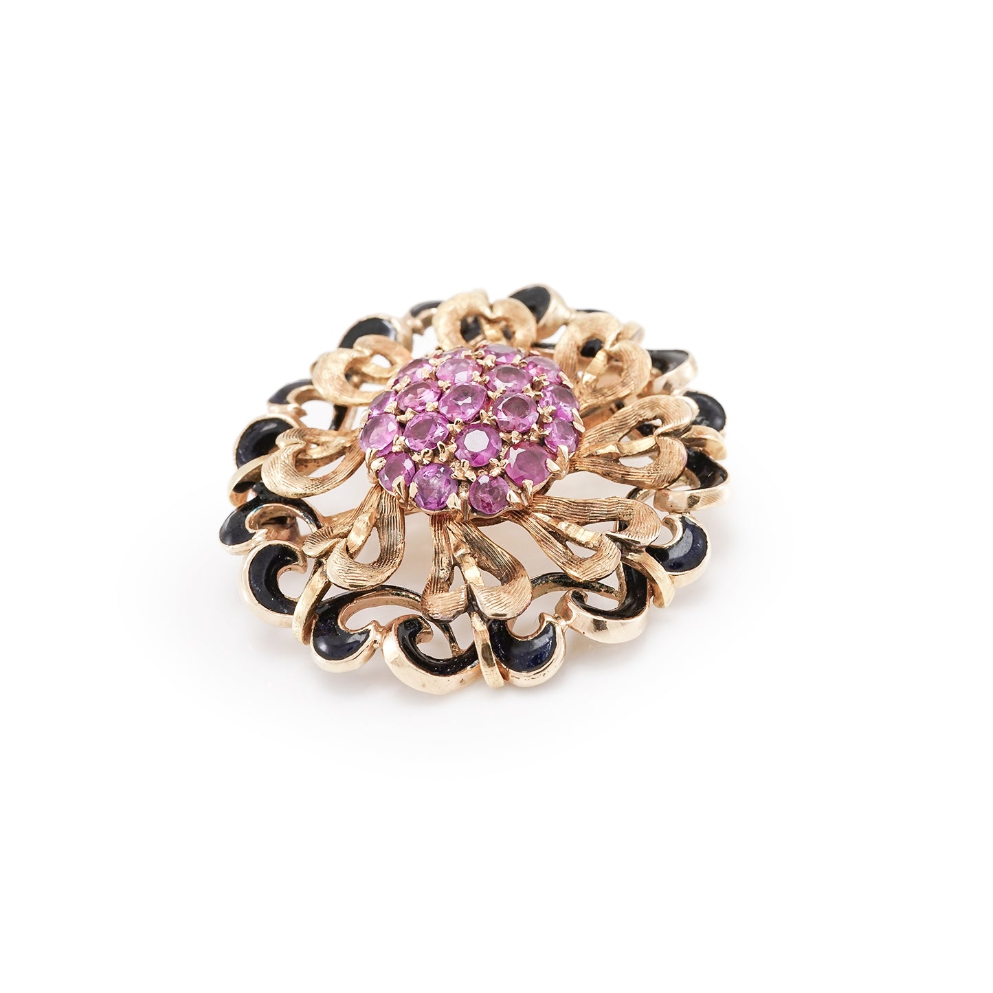 Vintage brooch ruby enamel 750 18K yellow gold women's jewelry pin jewelry 35.2 mm