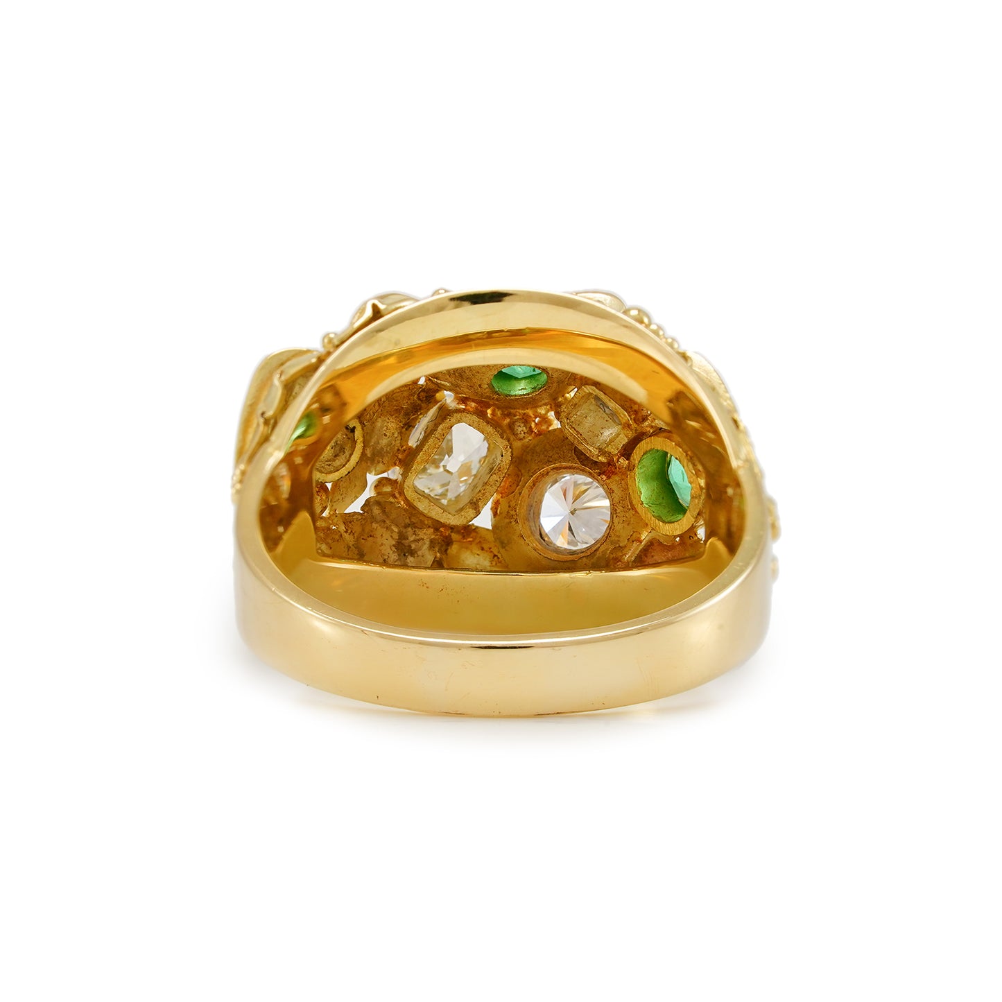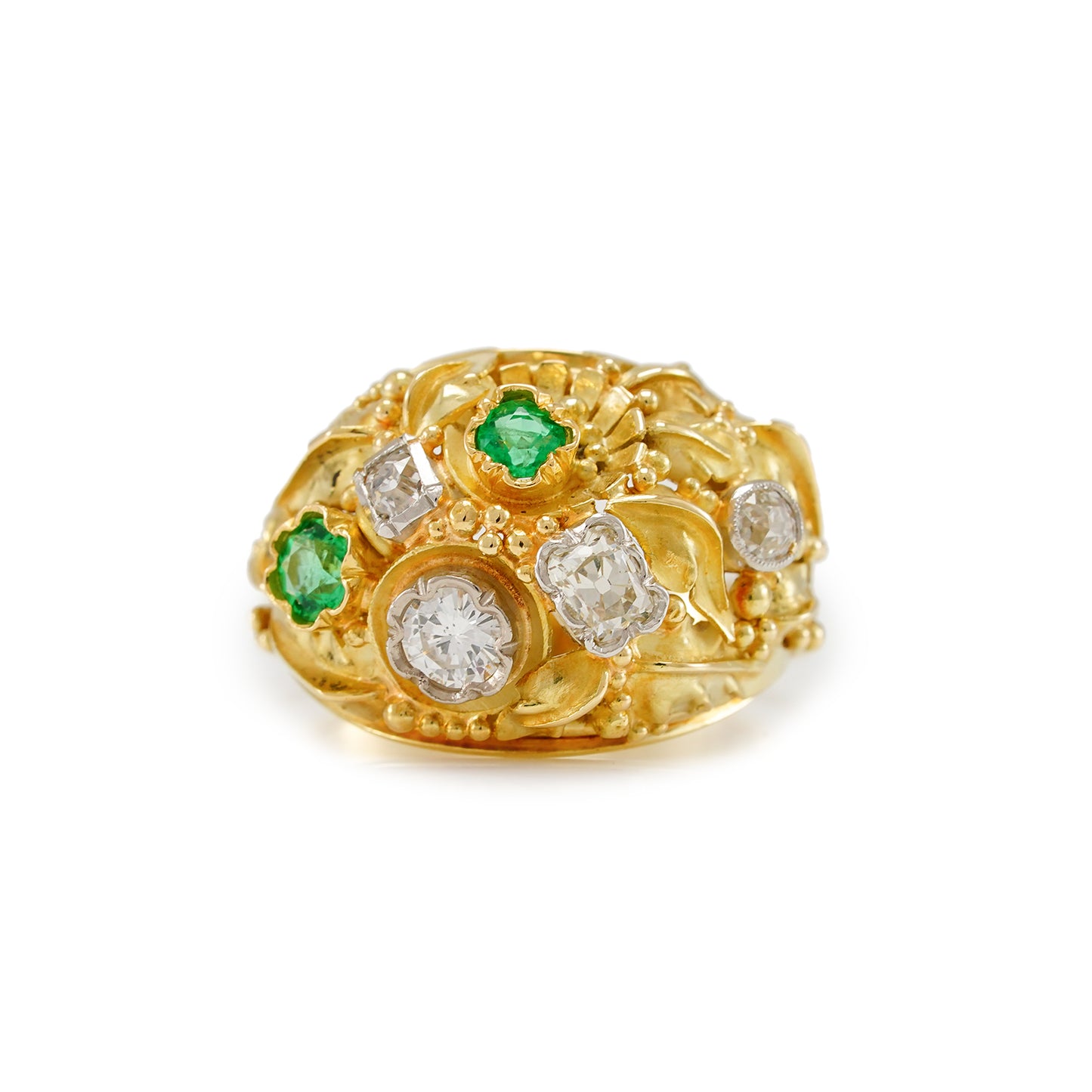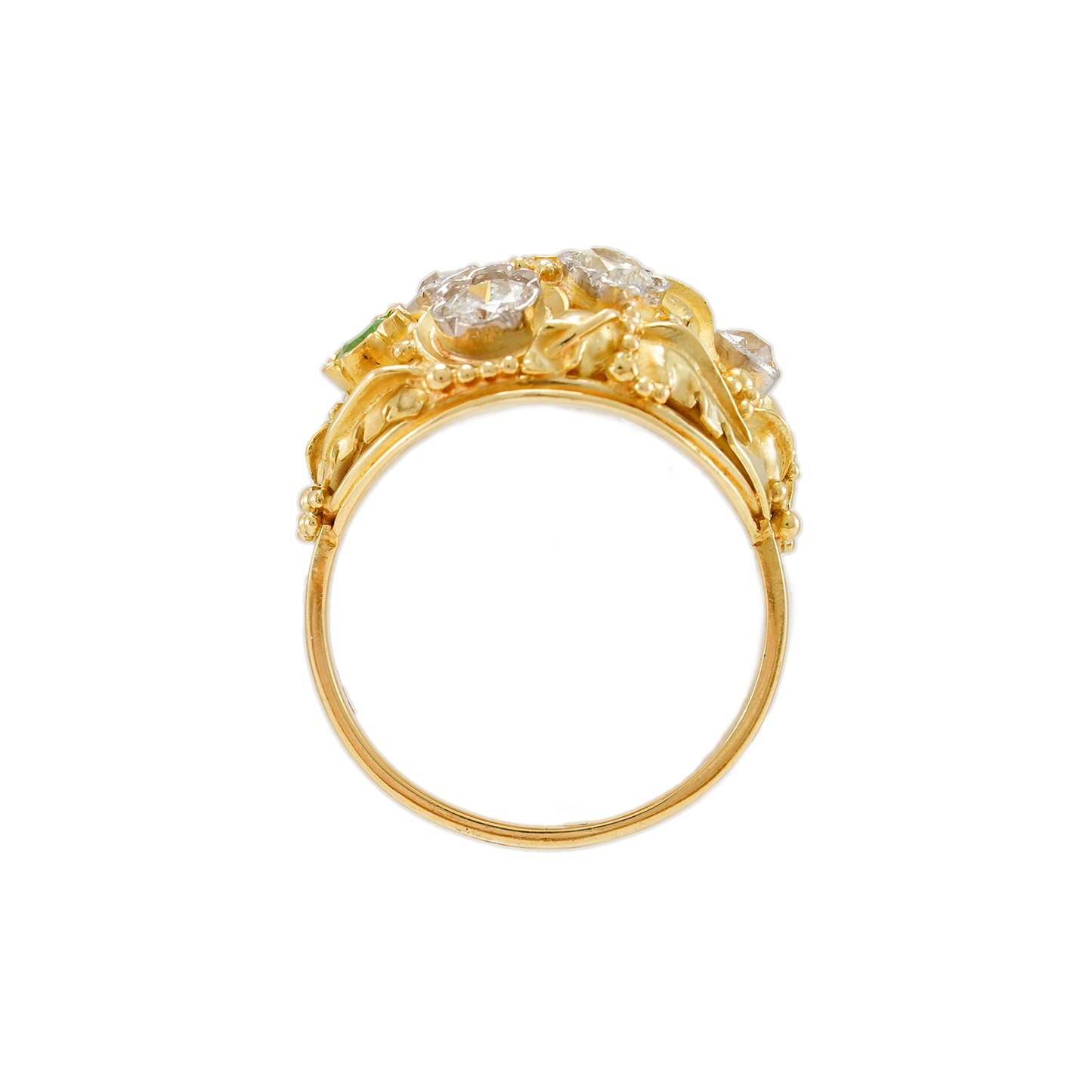 Vintage Cocktail Ring Diamond Old Cut Emerald Yellow Gold 14K Women's Jewelry Gold Ring