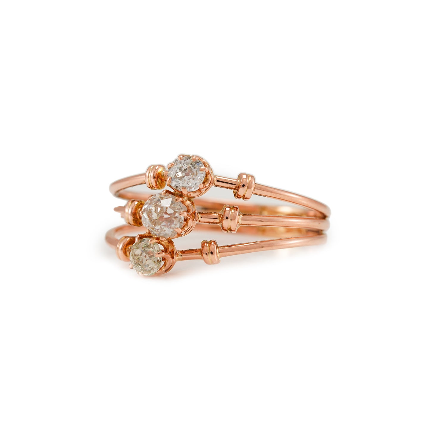 Vintage diamond ring 3 old cuts rose gold 18K women's jewelry gold ring women's ring