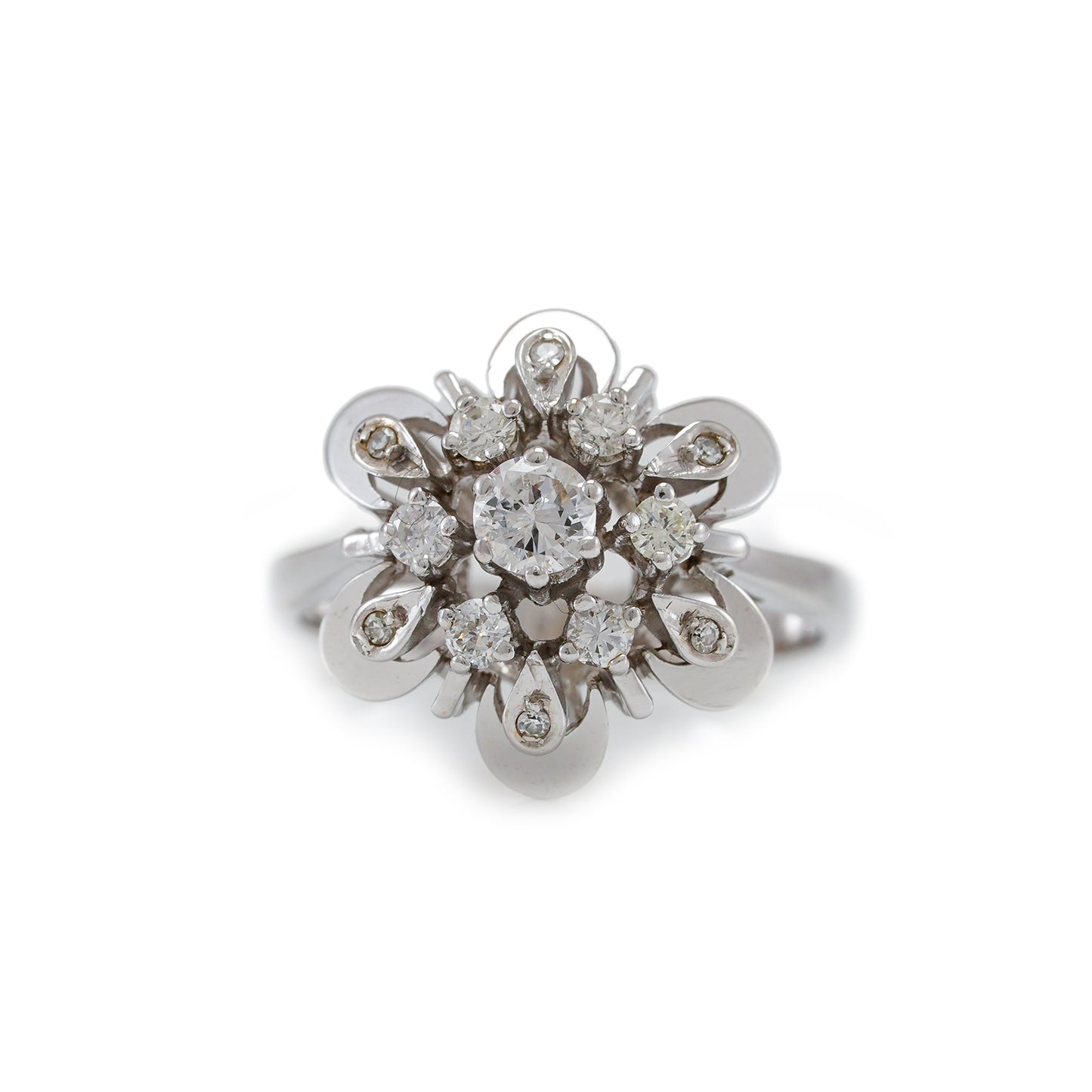 Vintage diamond ring flower white gold 14K women's jewelry cocktail ring gold ring