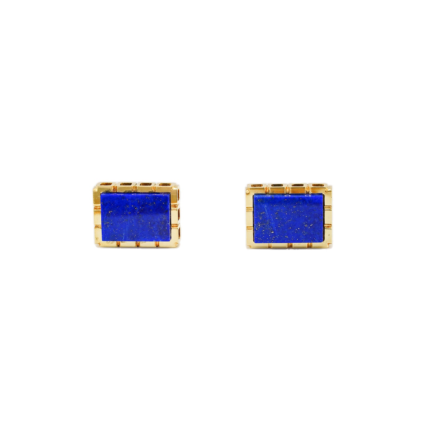 Vintage Gemstone Gold Cufflinks Lapis Yellow Gold 14K Set Men's Jewelry