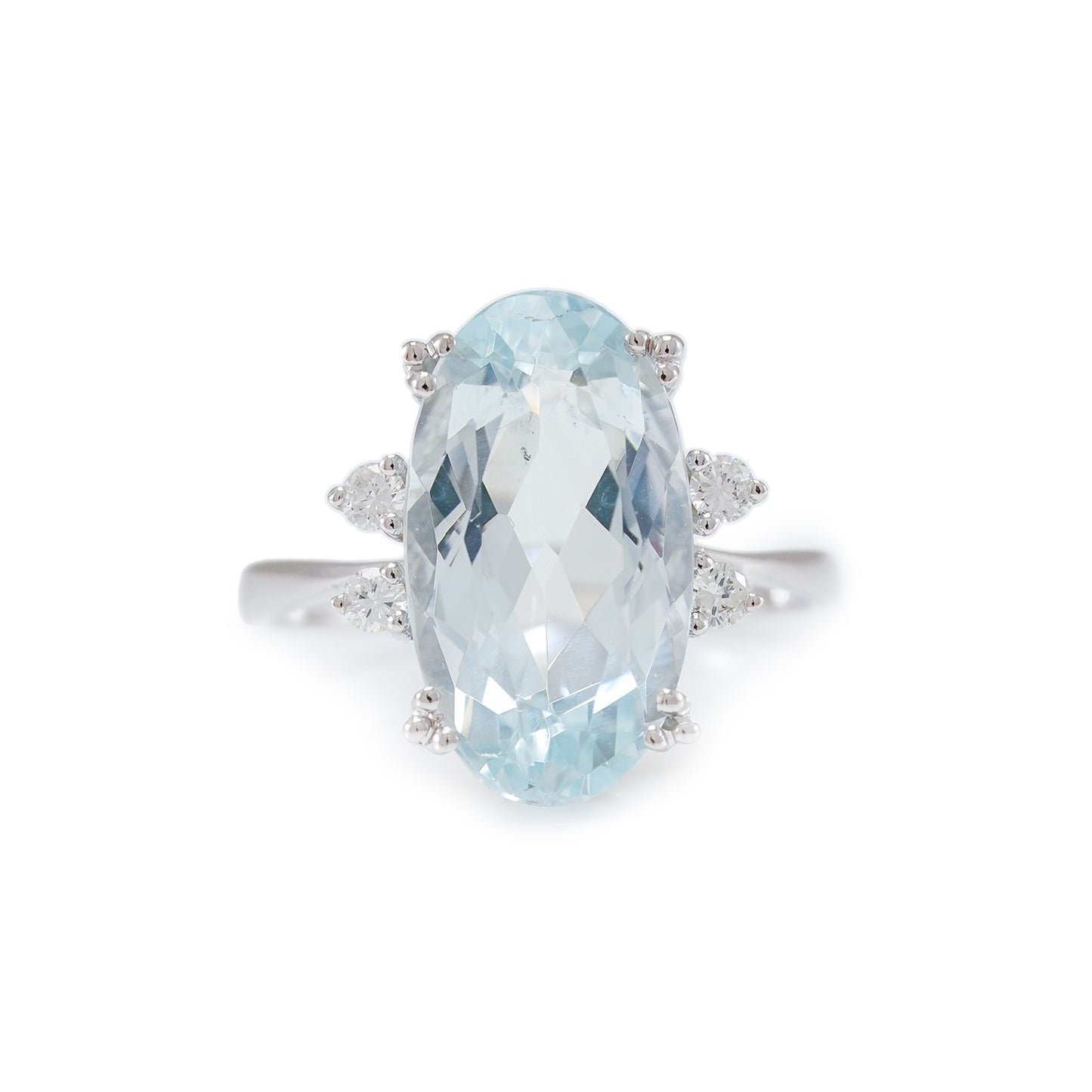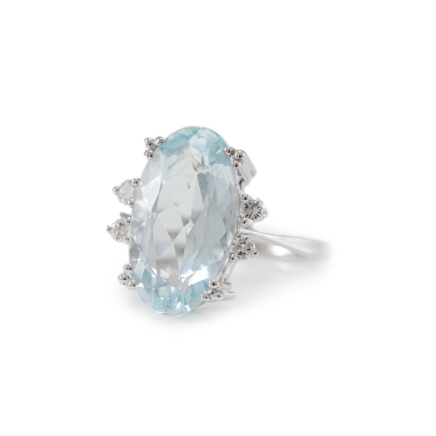 Vintage Gemstone Ring Aquamarine Diamond White Gold 14K Women's Jewelry Gold Ring