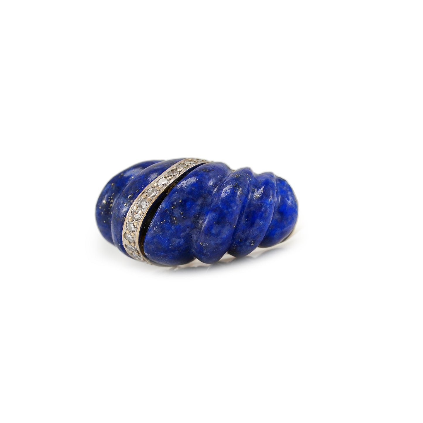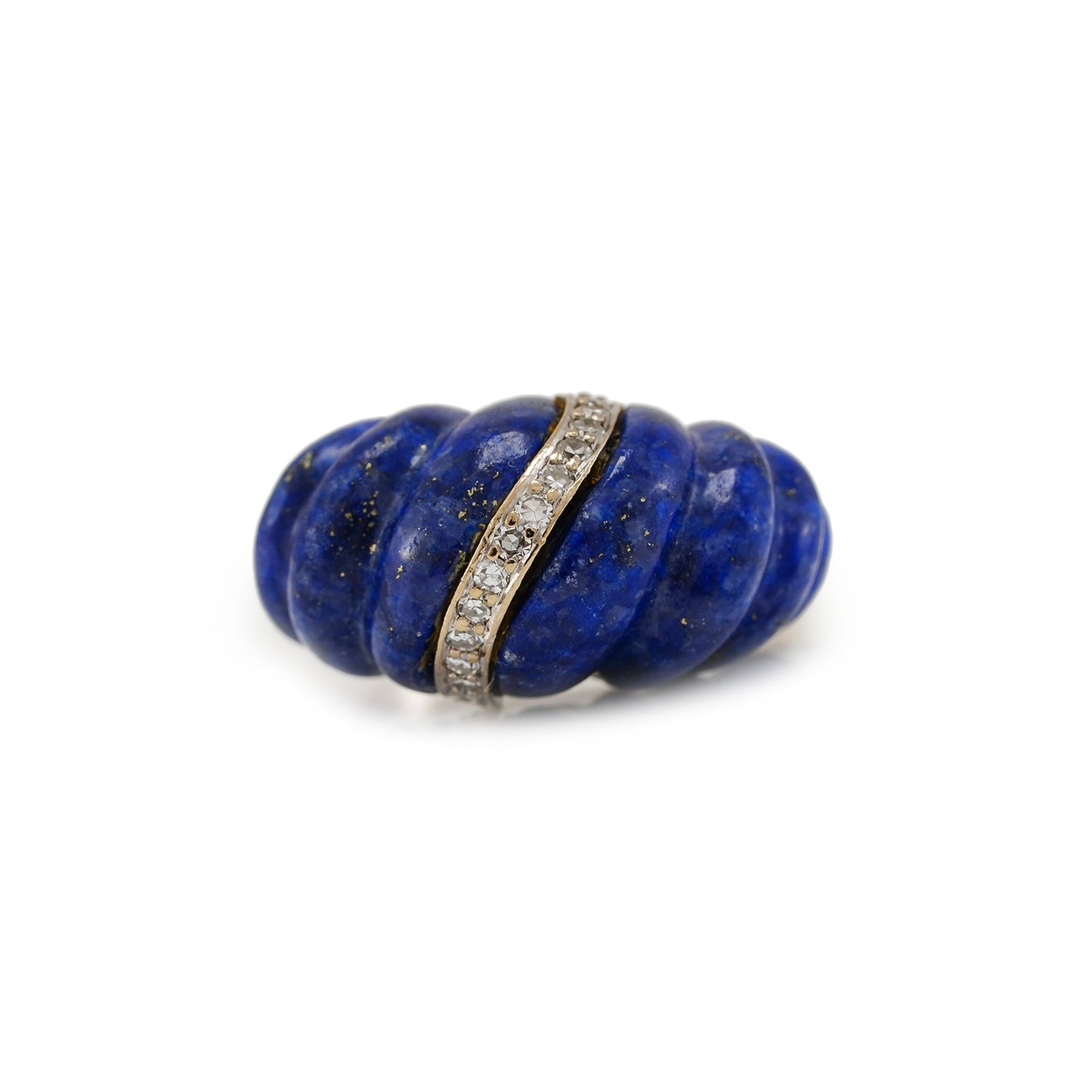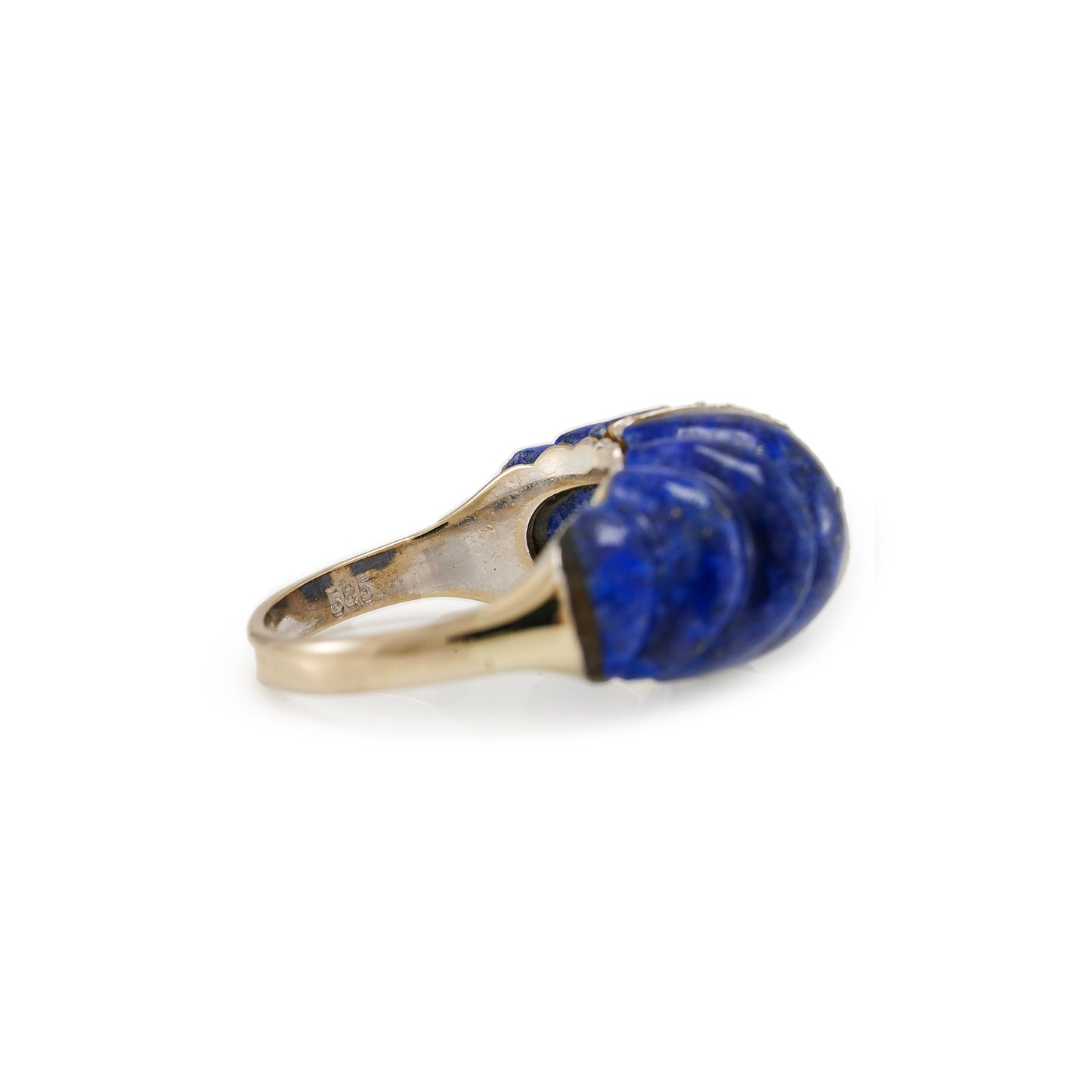 Vintage Gemstone Ring Lapis Diamond White Gold 14K Women's Jewelry Women's Ring