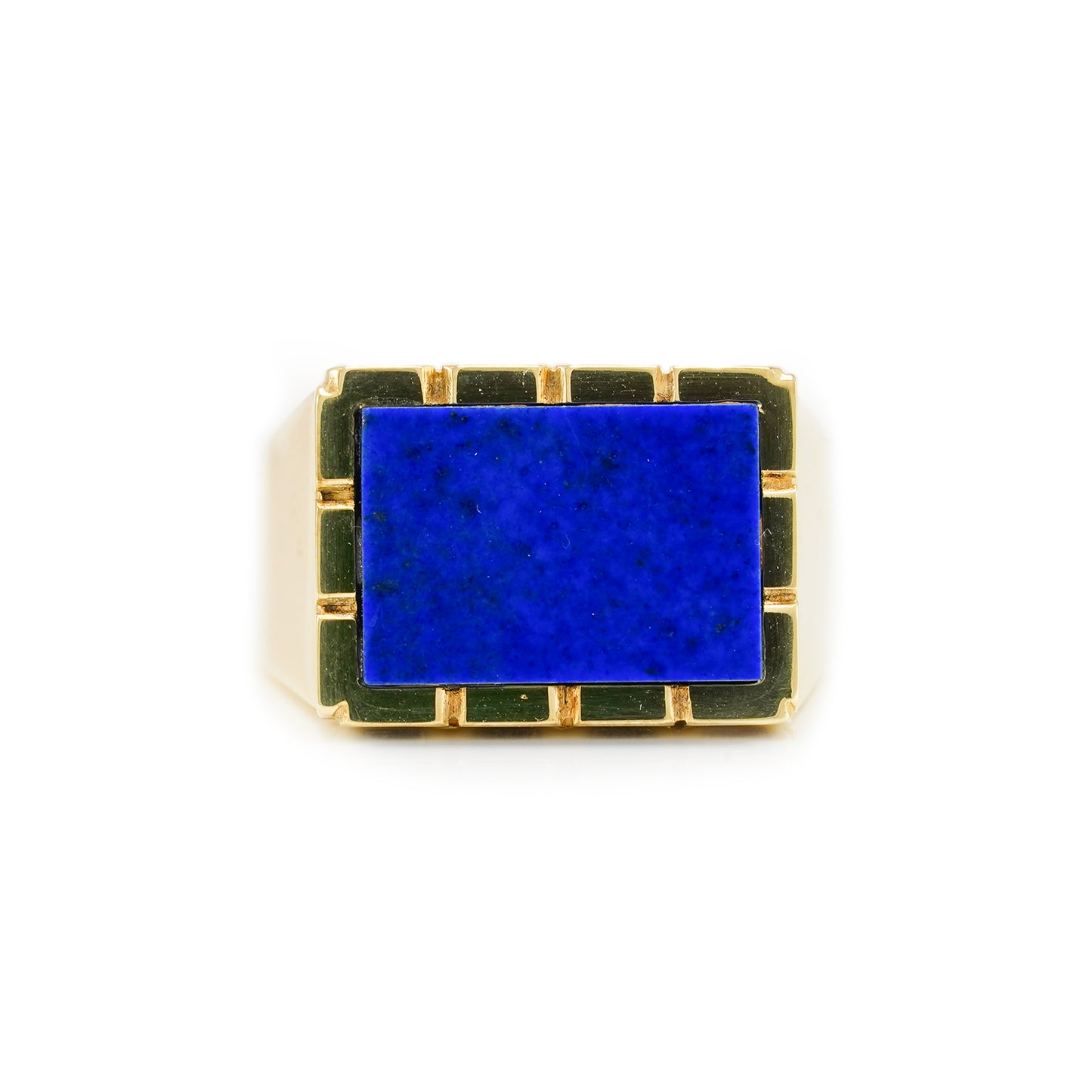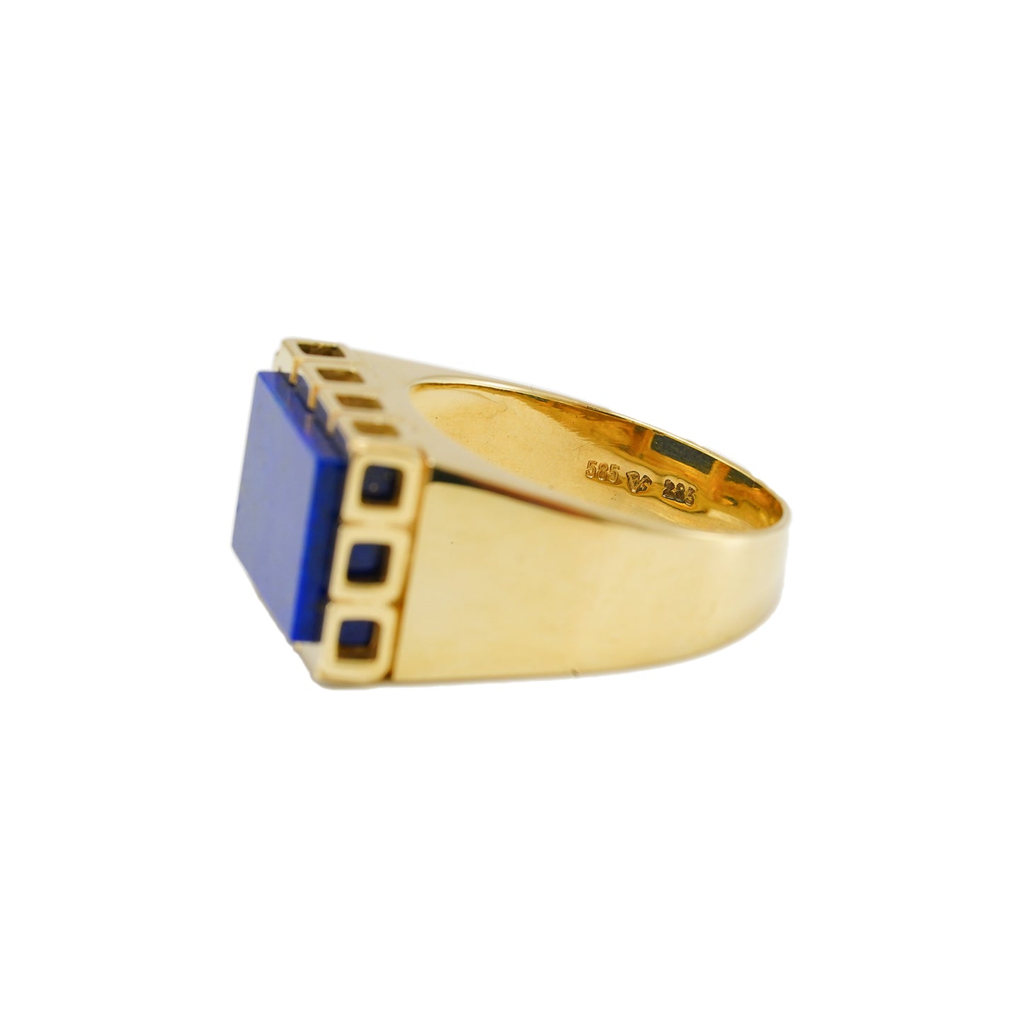 Vintage Gemstone Ring Lapis Yellow Gold 14K Set Men's Ring Men's Jewelry Gold Ring