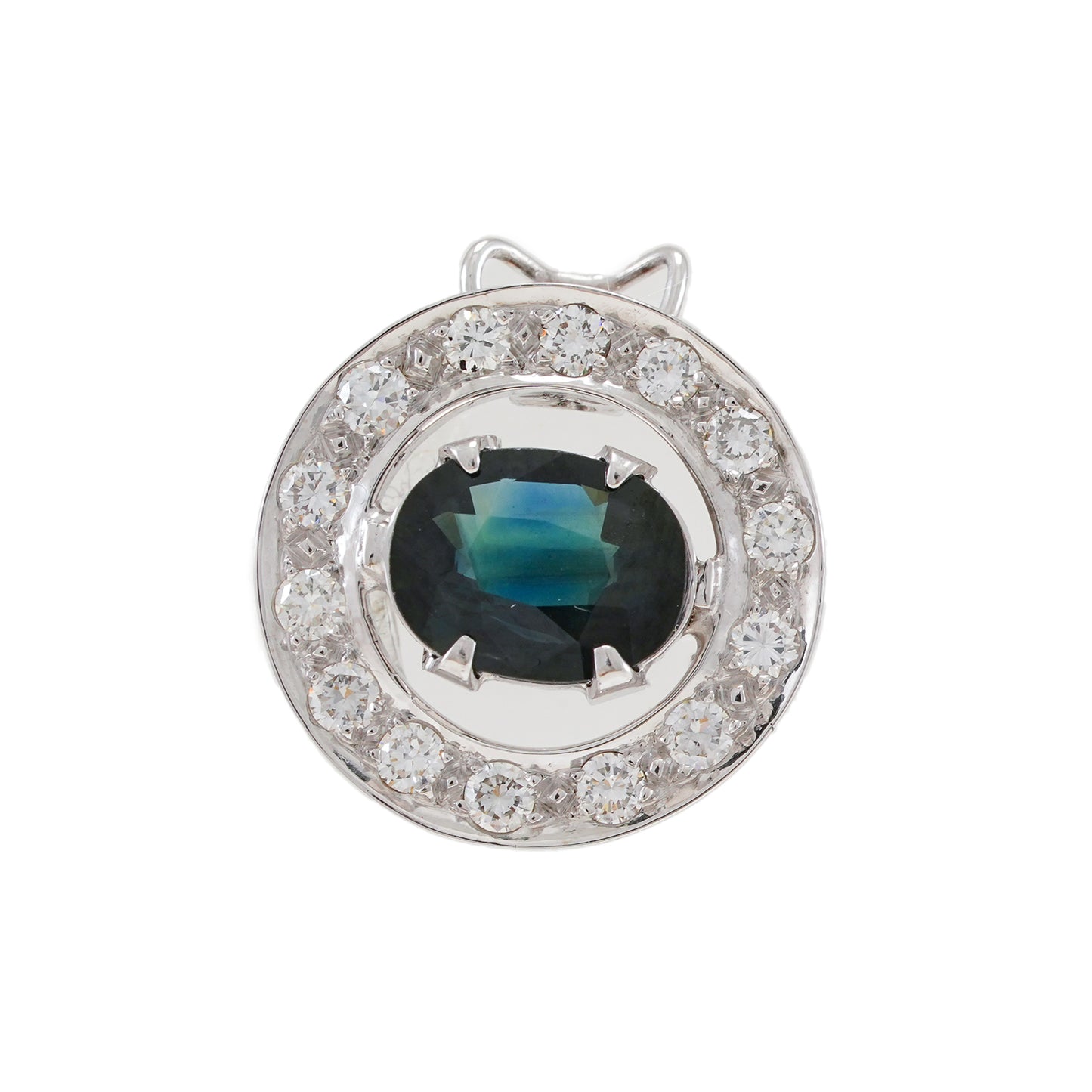 Vintage Entourage Diamond Sapphire Clip Hinged Pendant White Gold 14K Women's Jewelry