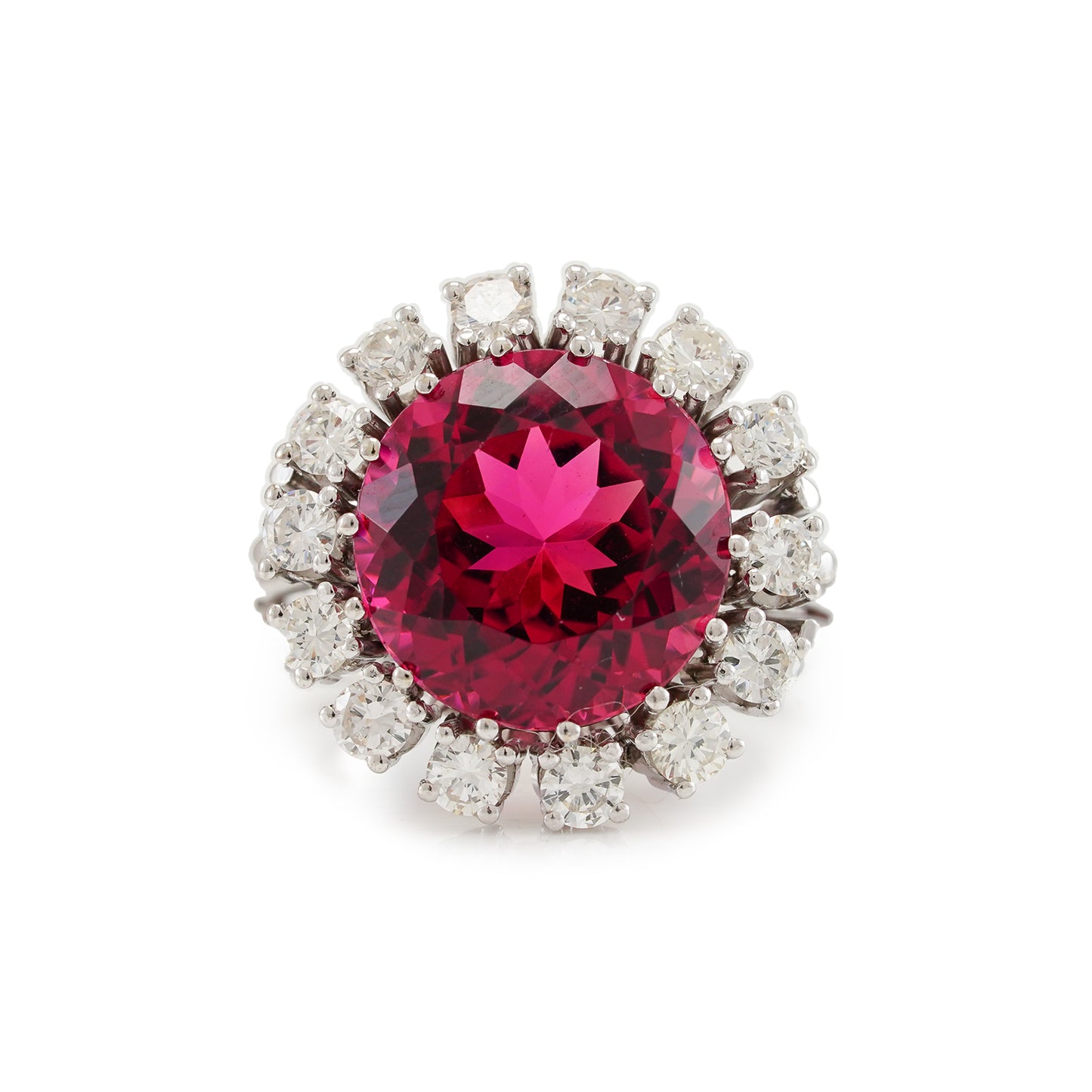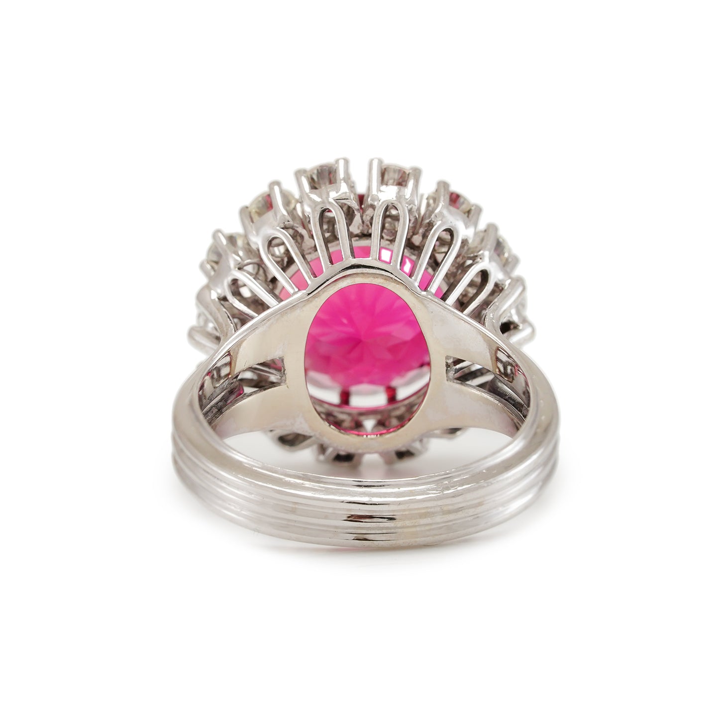 Vintage Entourage Ring Rubellite Diamond White Gold 14K Women's Jewelry Cocktail Ring