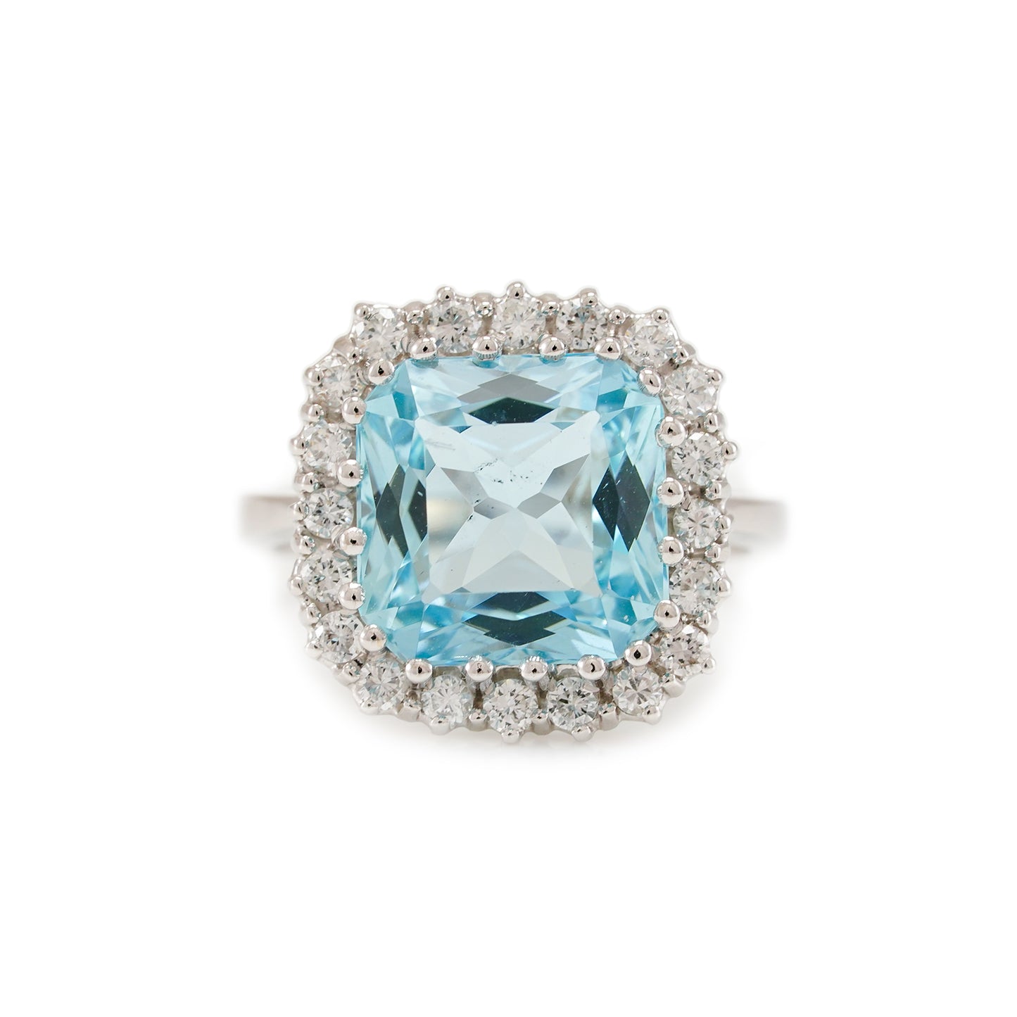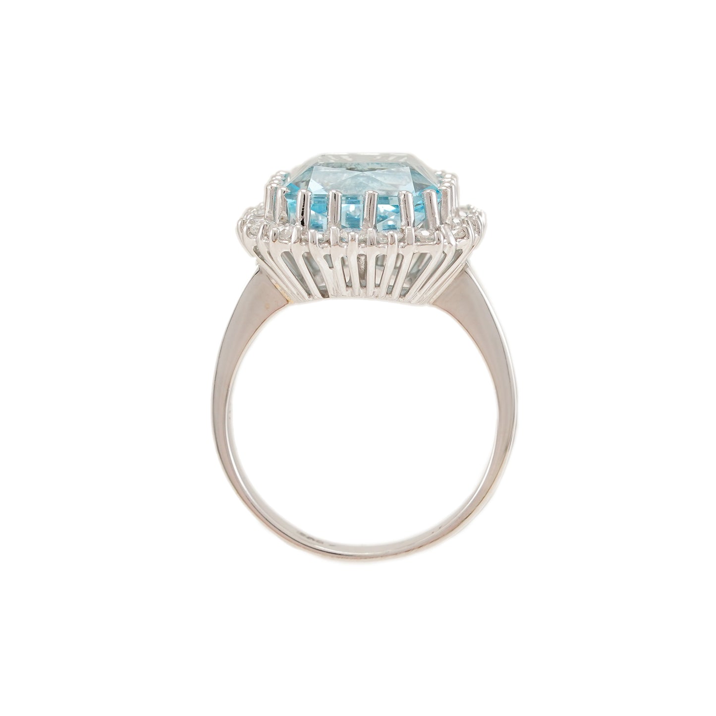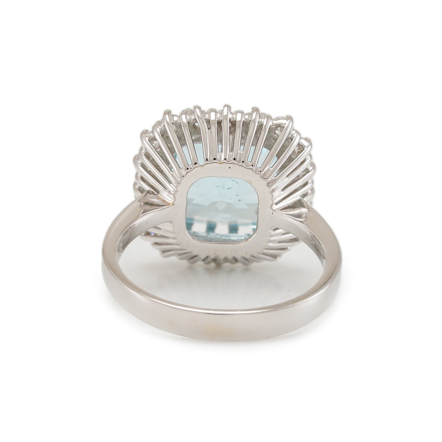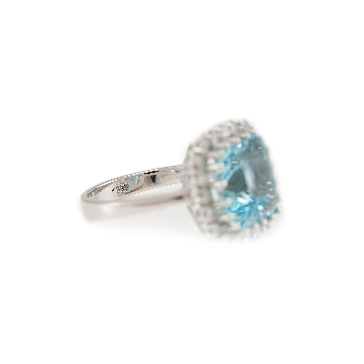 Vintage Entuorage Ring Aquamarine Diamond White Gold 14K Women's Jewelry Cocktail Ring