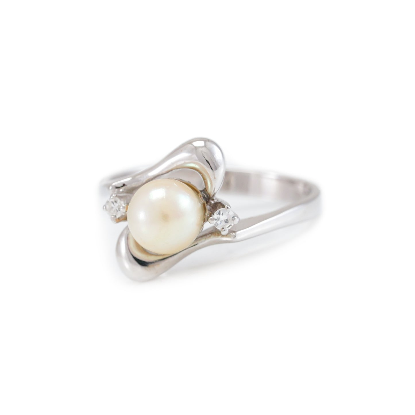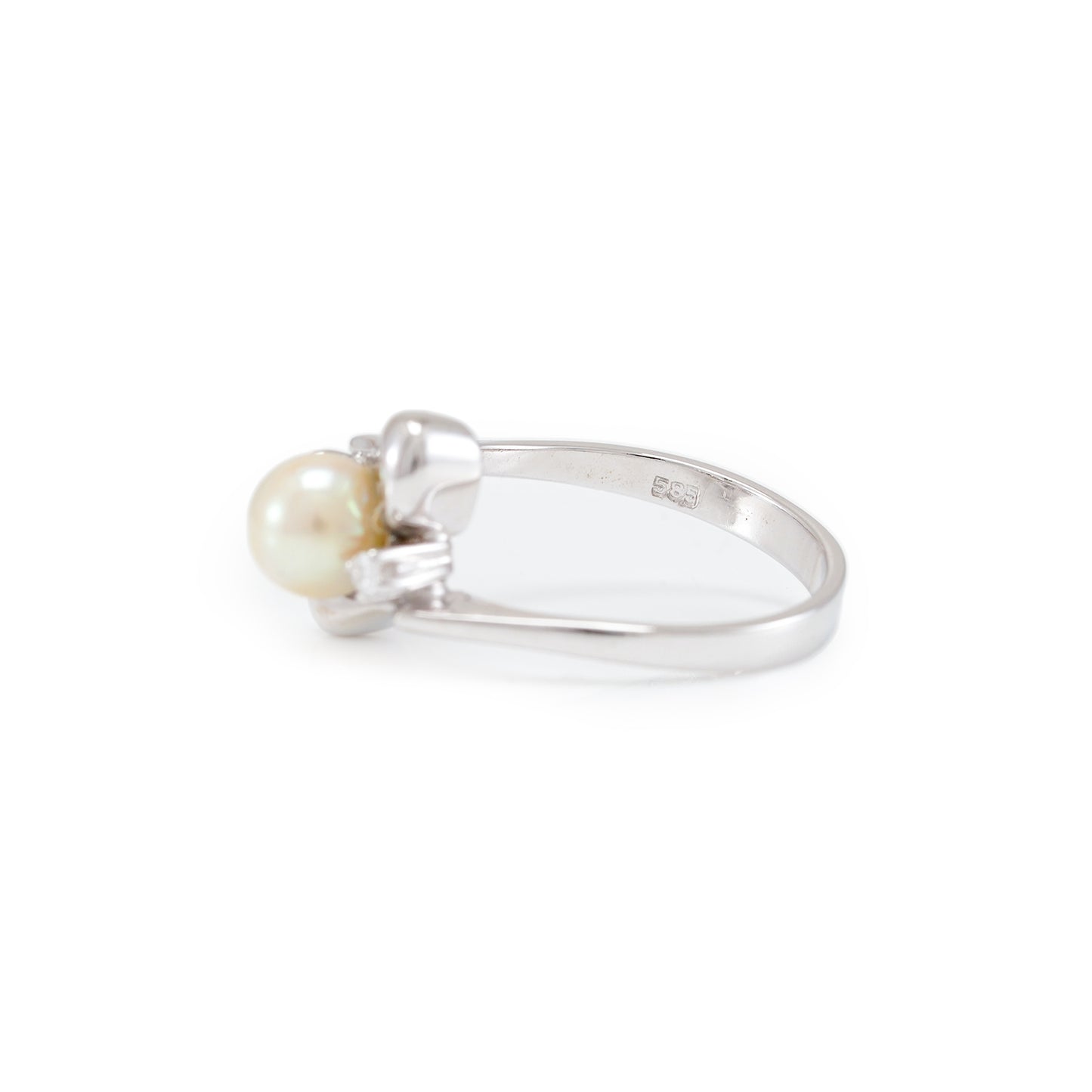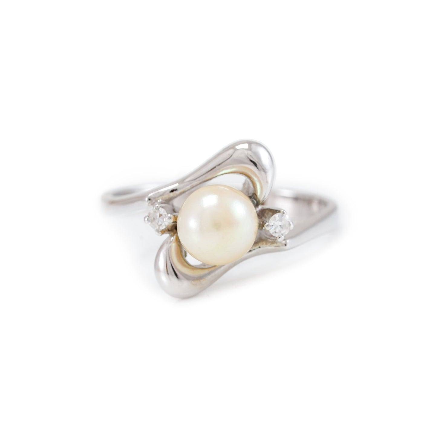 Vintage pearl diamond ring white gold 14K women's jewelry gold ring pearl jewelry