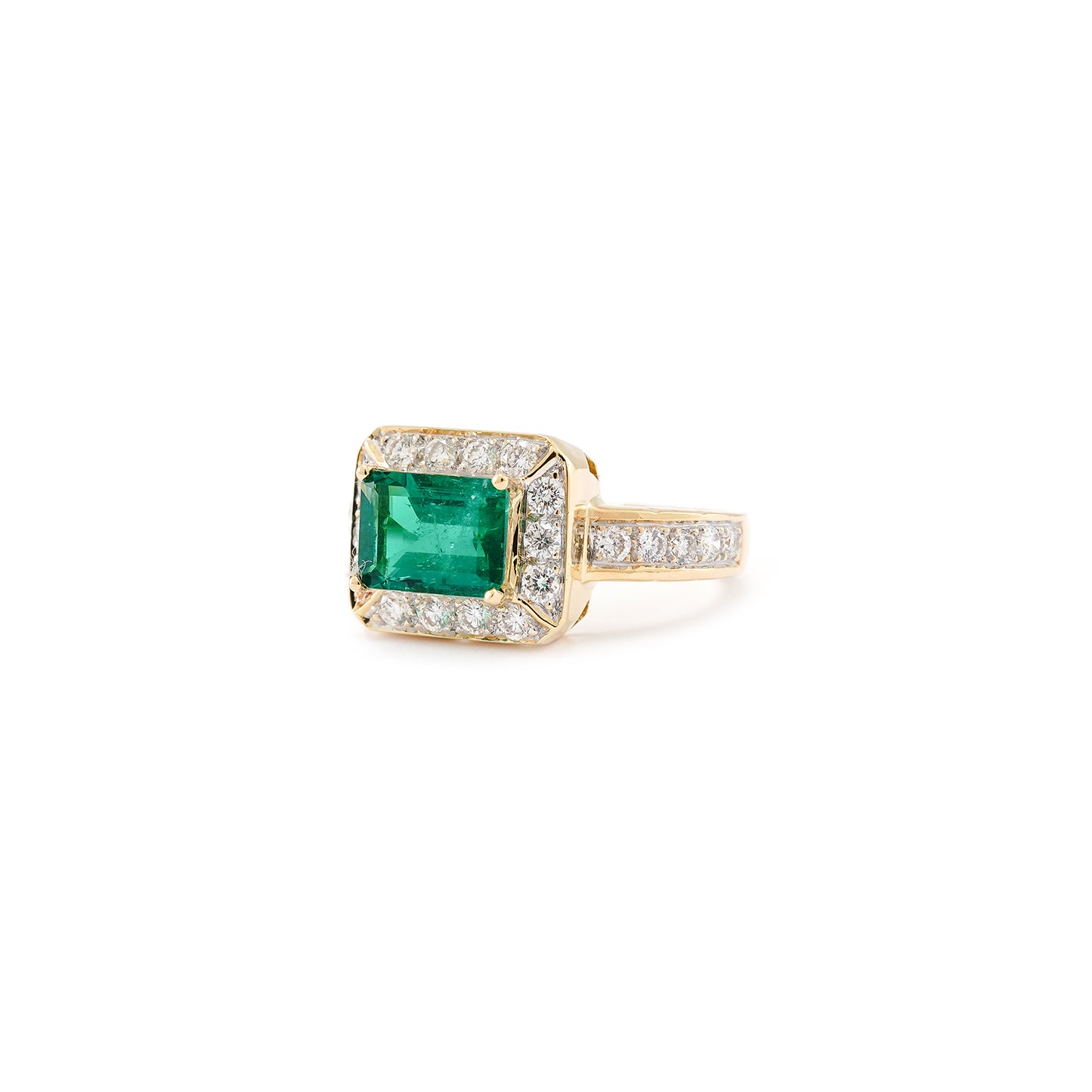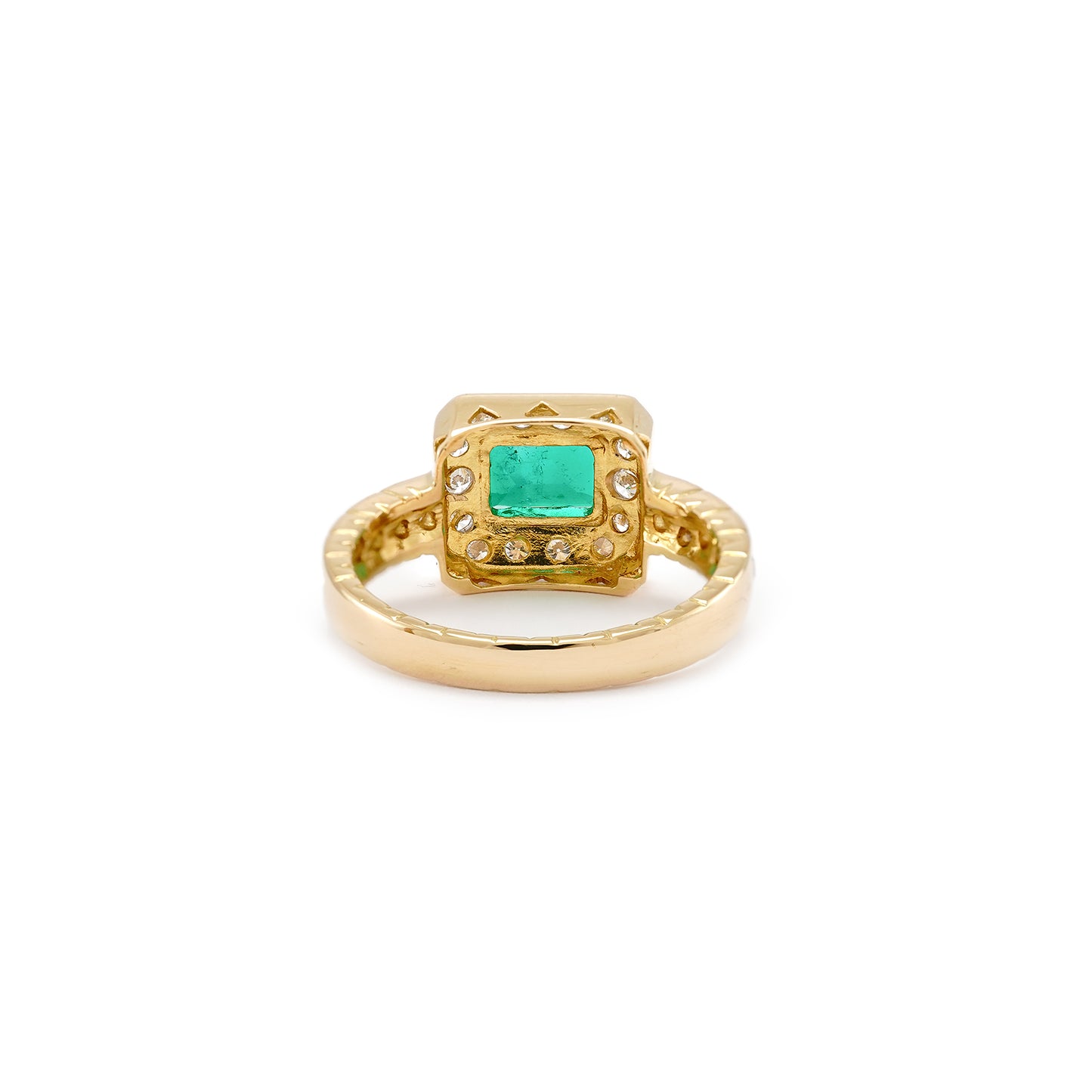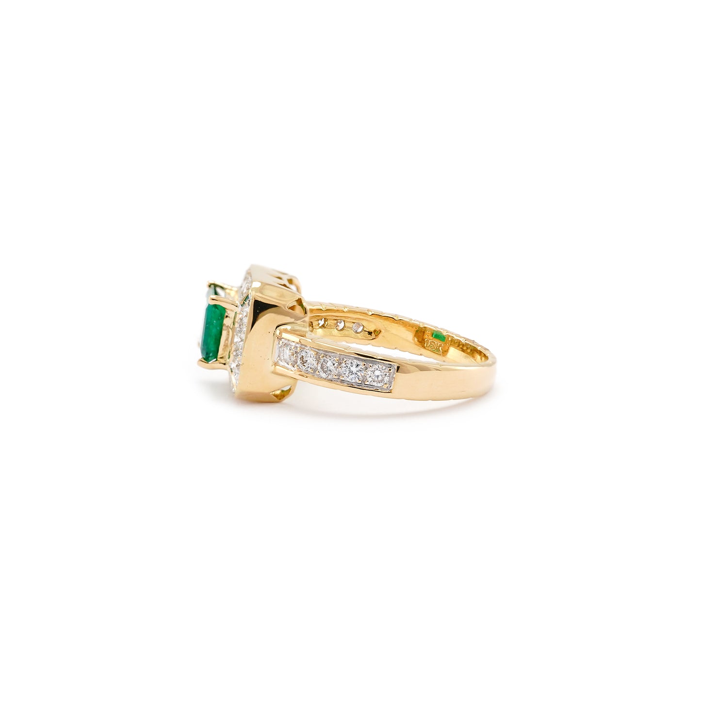 Vintage engagement ring yellow gold 750 18K 0.75 carat emerald diamond gold ring