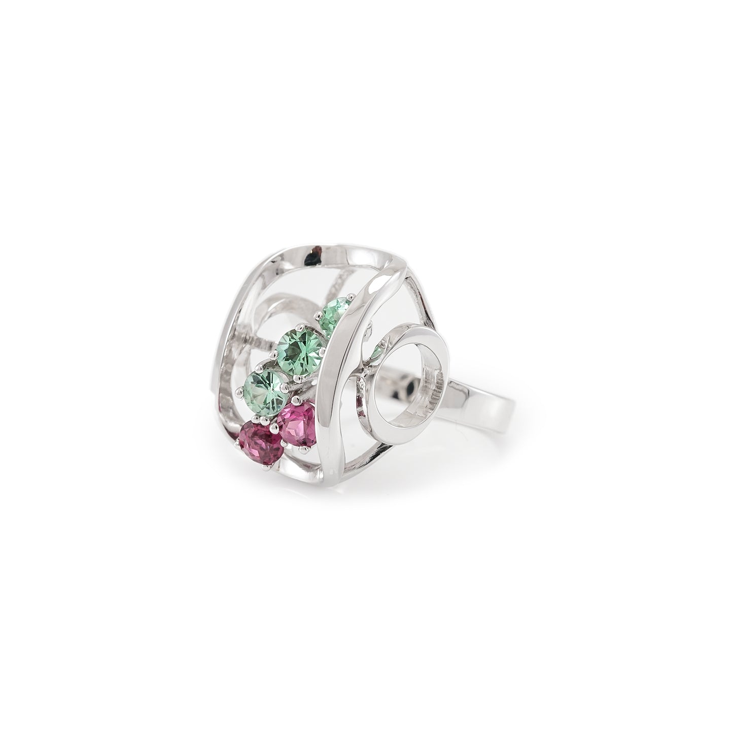 ausgefallener Damenschmuck Damenring Edelsteine Weissgoldring Turmaline 14K RW55