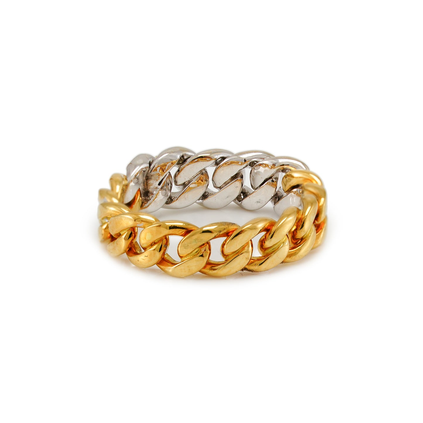 Bicolor Kettenring Bandring Diamant Gelbgold Weißgold 18K Damenschmuck Goldring