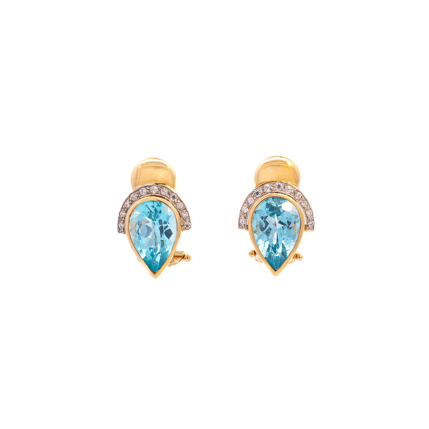 Bicolor Ohrringe Omegaverschluss Topas Zirkonia 750 18K Damenschmuck Ohrstecker