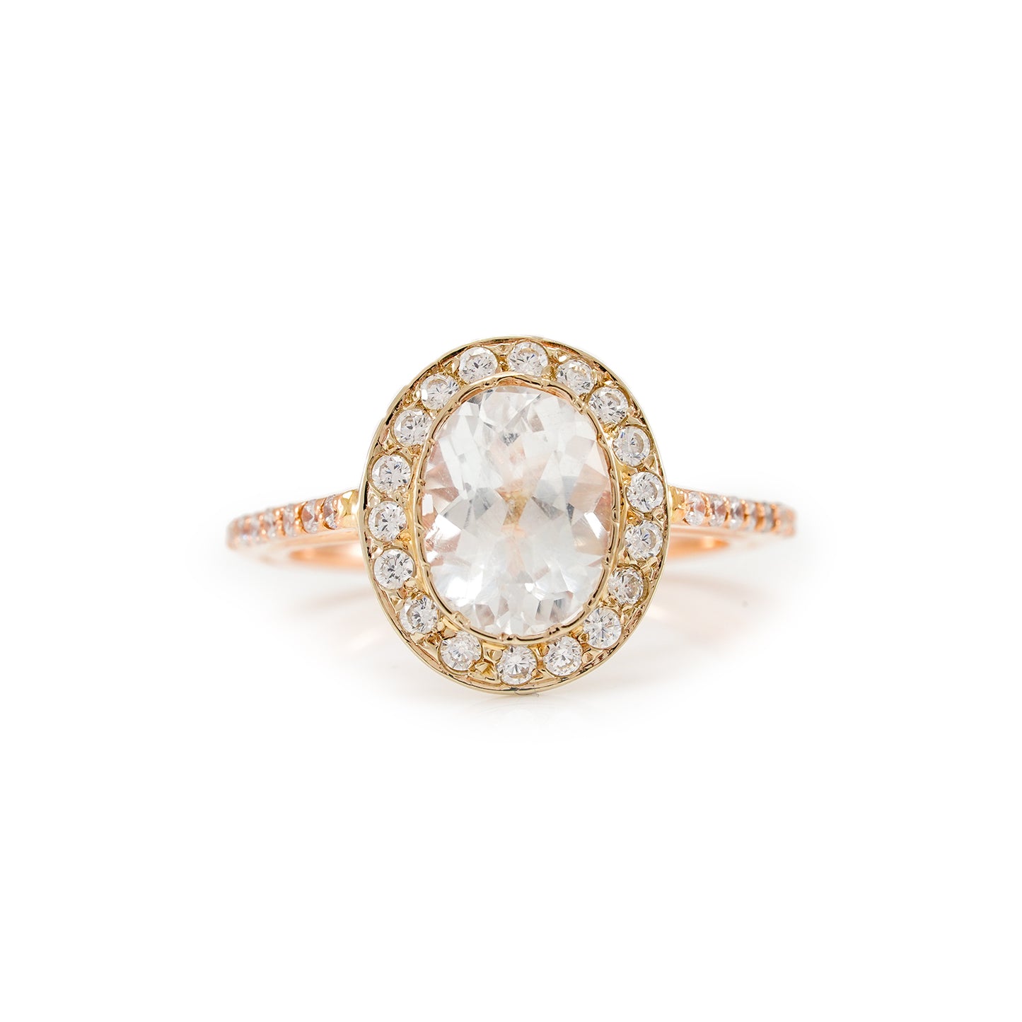 Damen Cocktail Ring mit Cubic Zirkonia Besatz 14K Rotgold Verlobungsring Schmuck