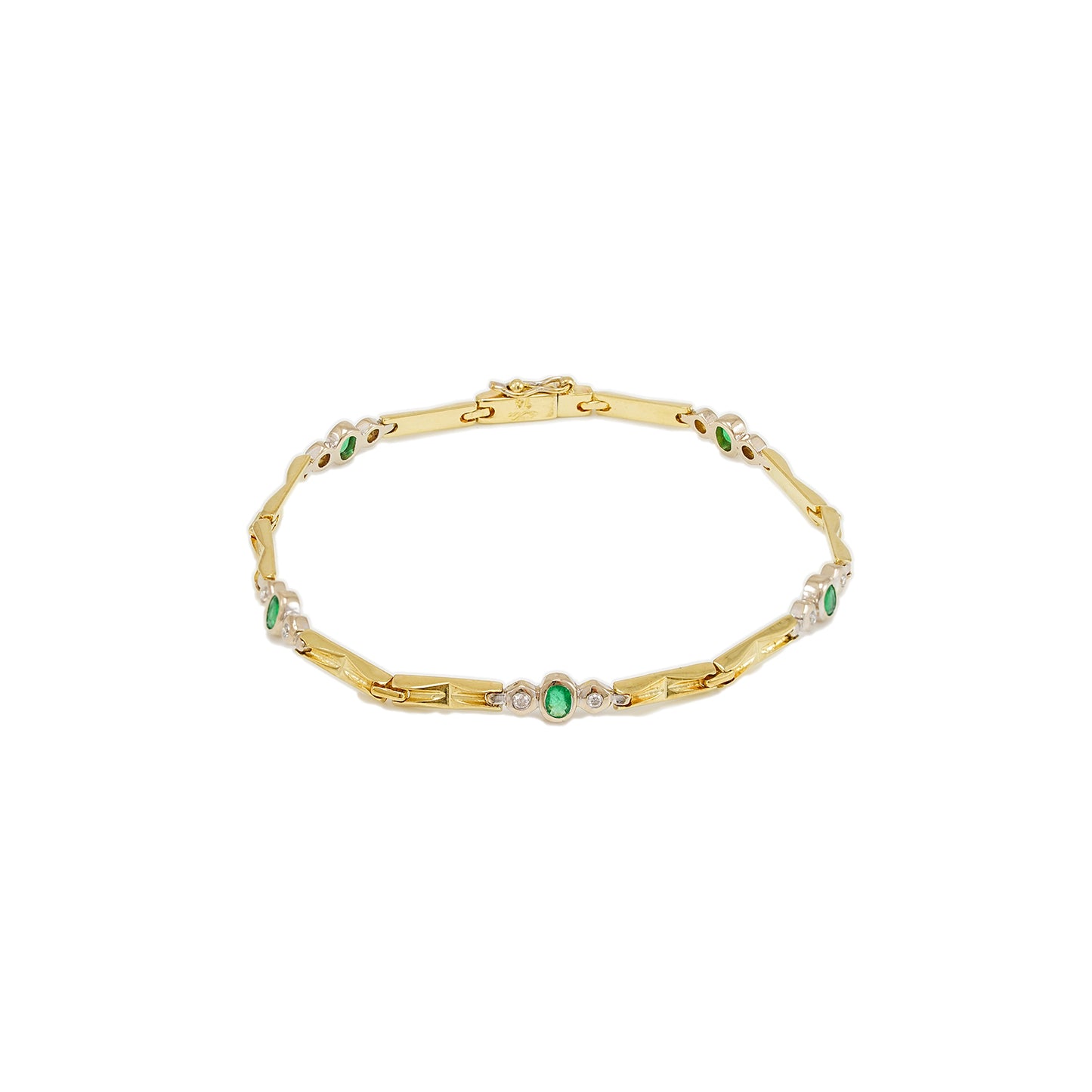 Edelstein Armband Smaragd Diamant Gelbgold 14K Damenschmuck Goldarmband