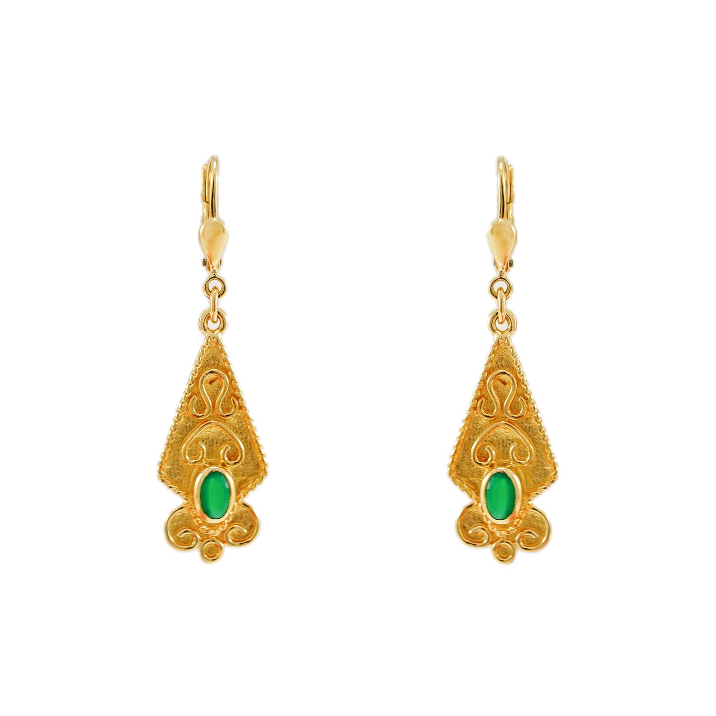 Edelstein Ohrhänger Smaragd Orient Style Gelbgold 14K Damenschmuck Goldohrringe