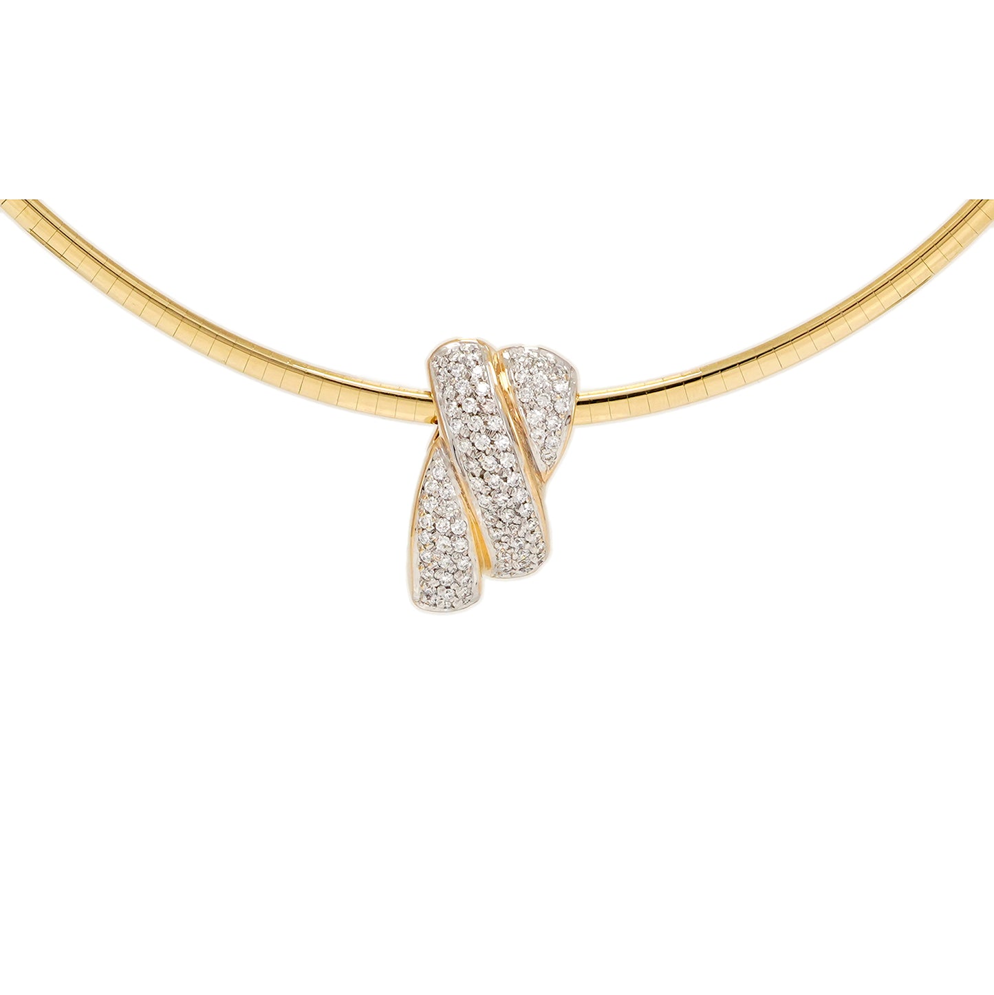 Exklusiver Omegareif mit Diamant Anhänger Bicolor 14K Gold Collier Halsreif Damenschmuck