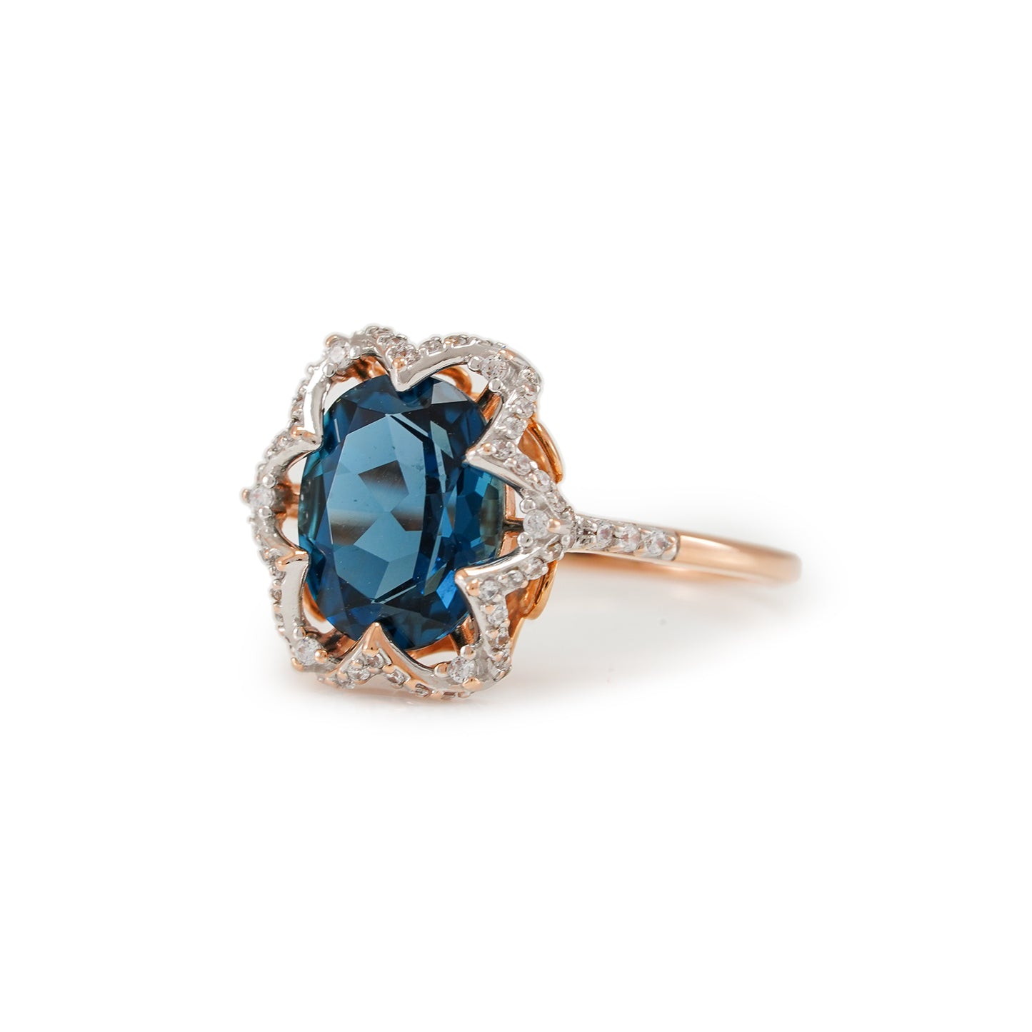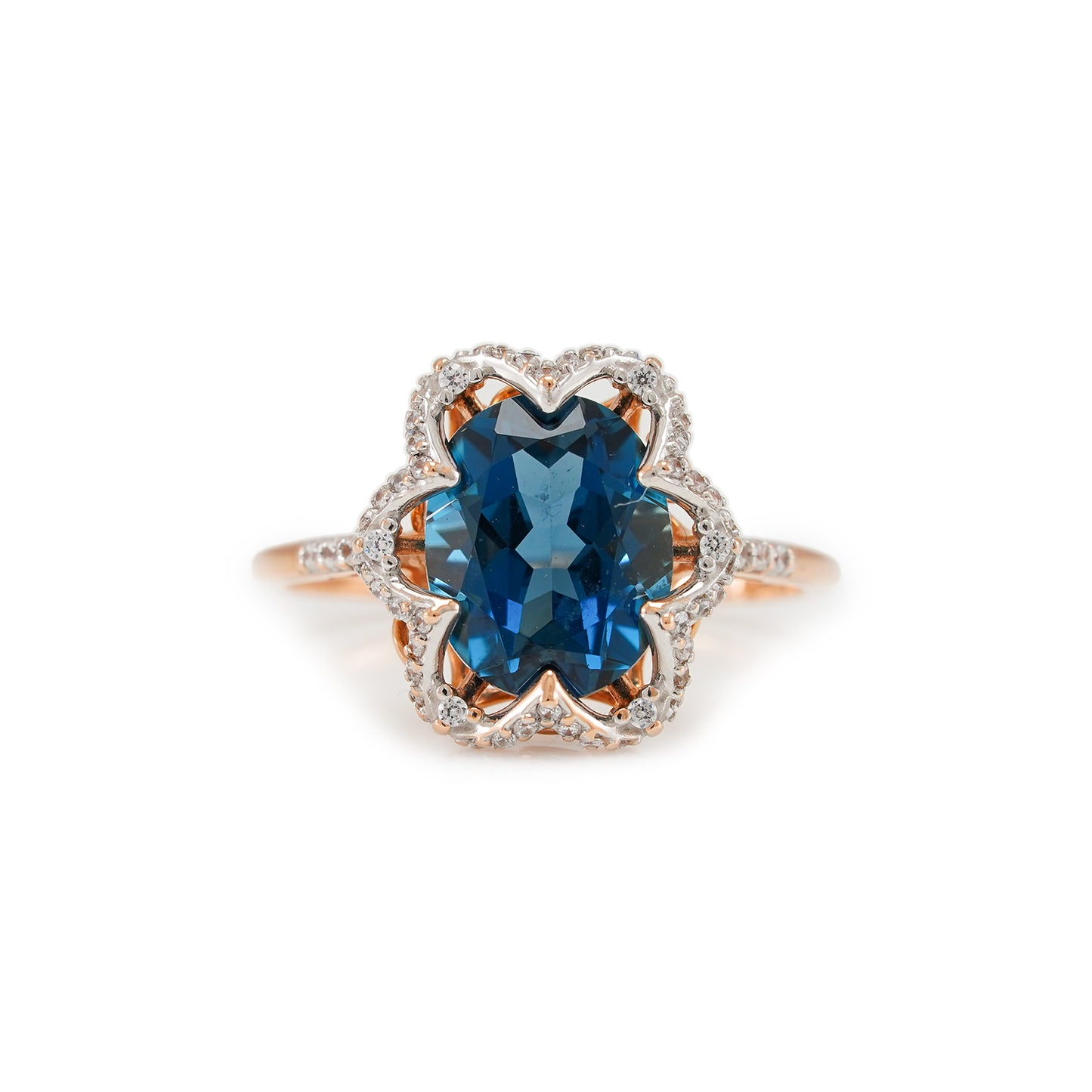 filigraner Cocktailring Topas London blue Rosegold 14K Set Damenschmuck Goldring