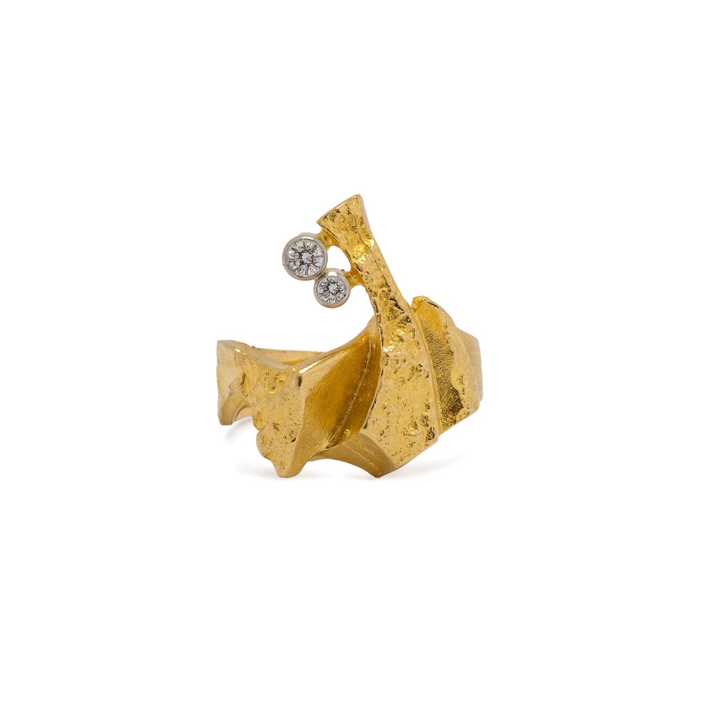 Lapponia Ring Vintage 1978 Diamond Twig Gelbgold 750 Damenring Markenschmuck