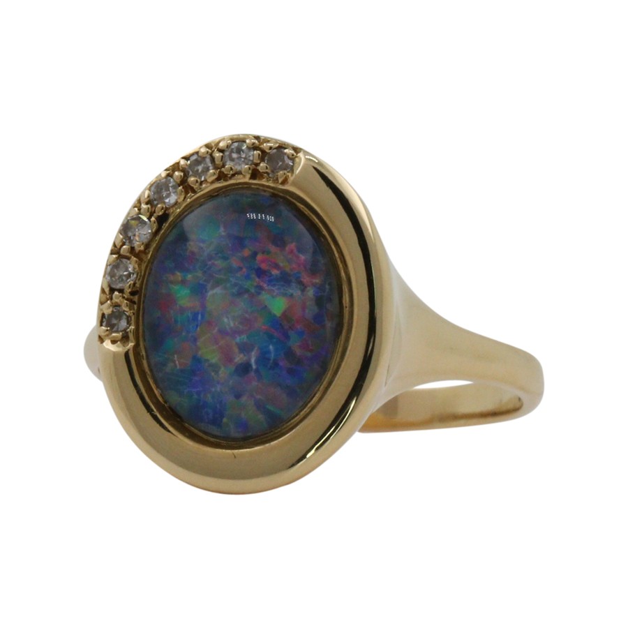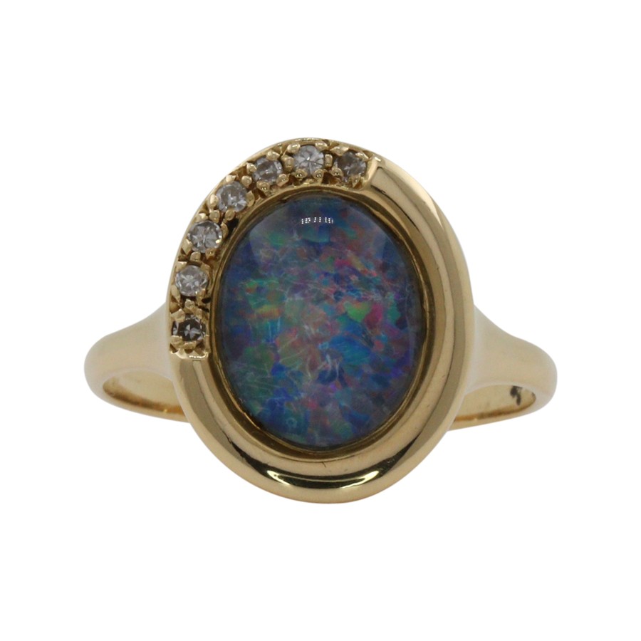 Handgearbeiteter Ring Gelbgold 750er 18K mit Opal+Diamanten Diamantring Damenring