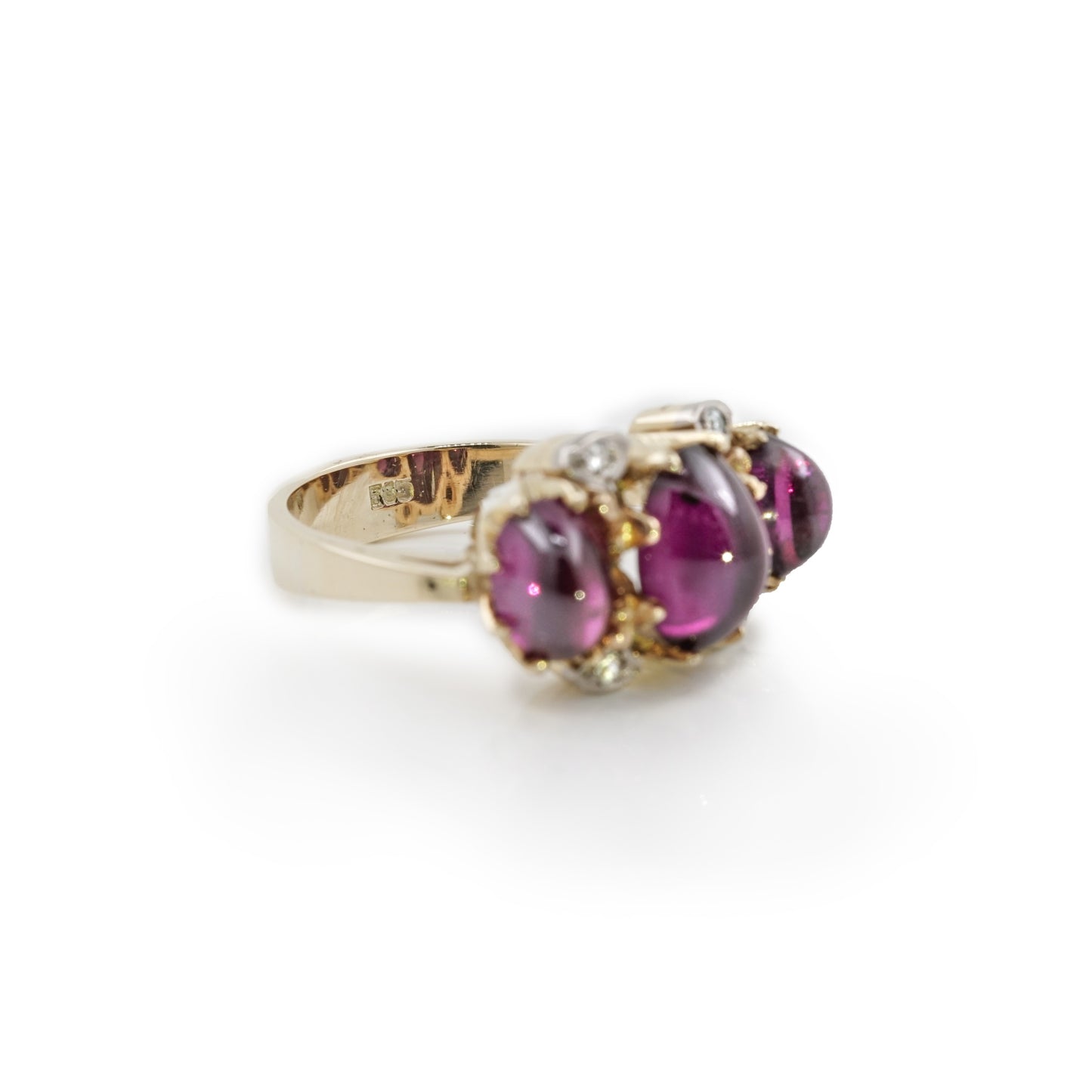 Ring Gelbgold Amethyst Cabochon Diamant Brillant 585 14K Damenschmuck Vintage