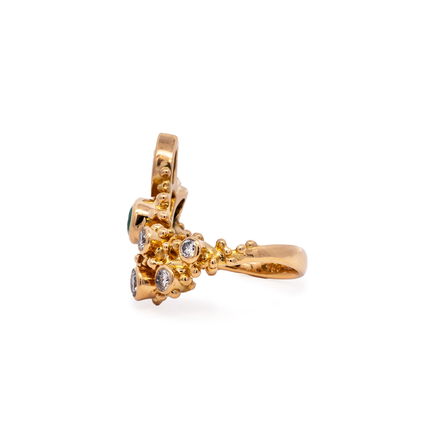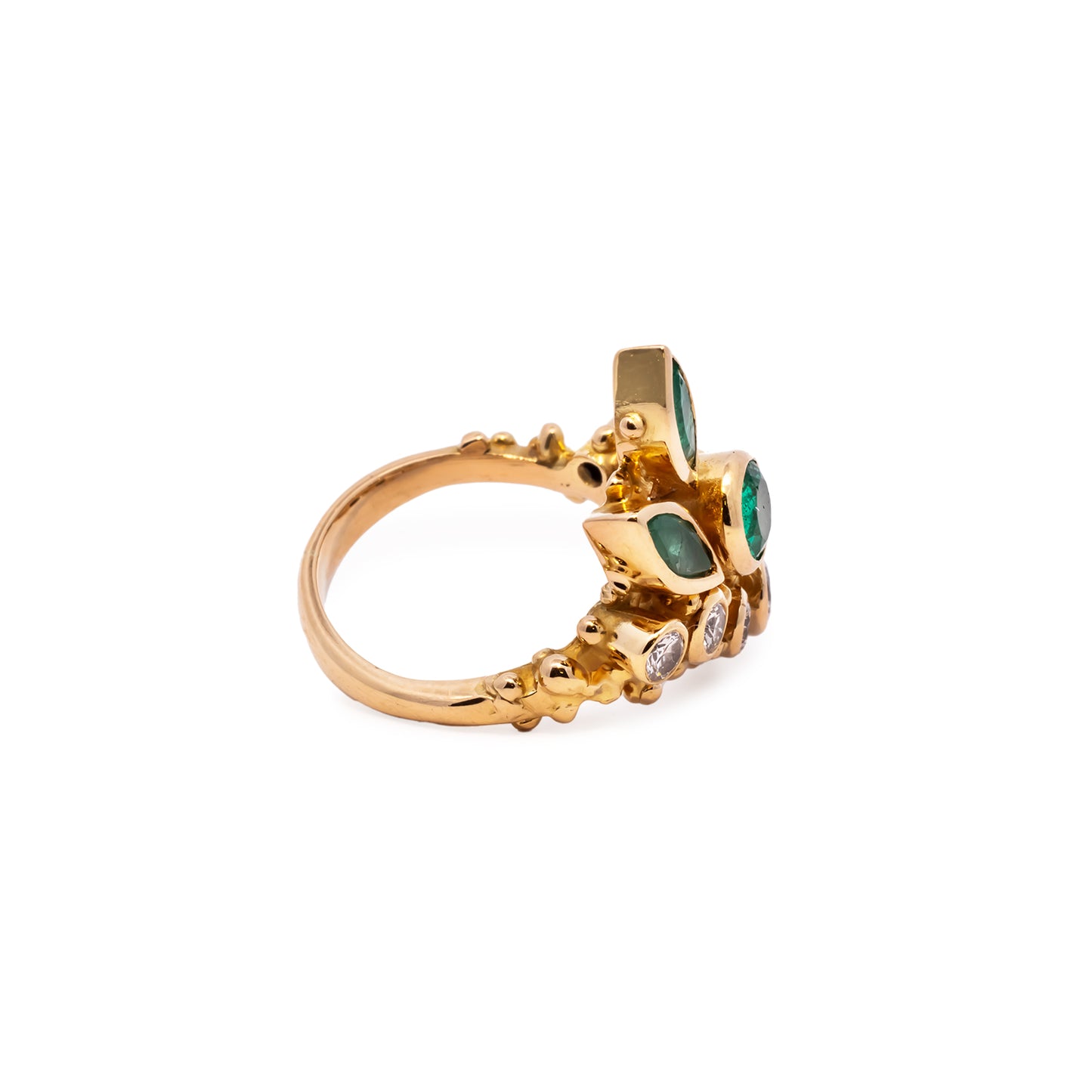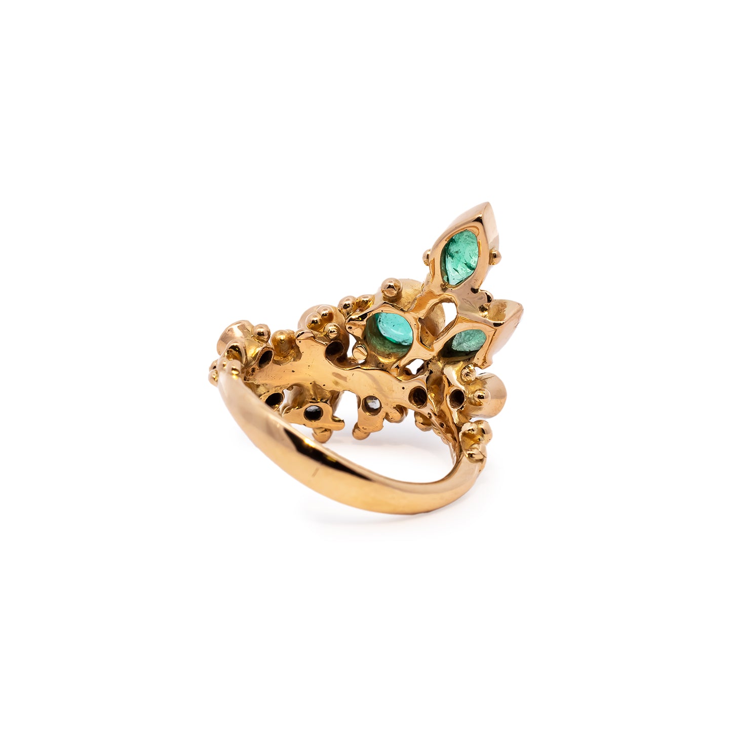 Vintage Cocktail Ring Diamant Smaragd Gelbgold 18K 750 Damenschmuck Goldring