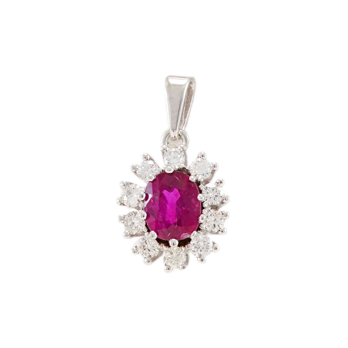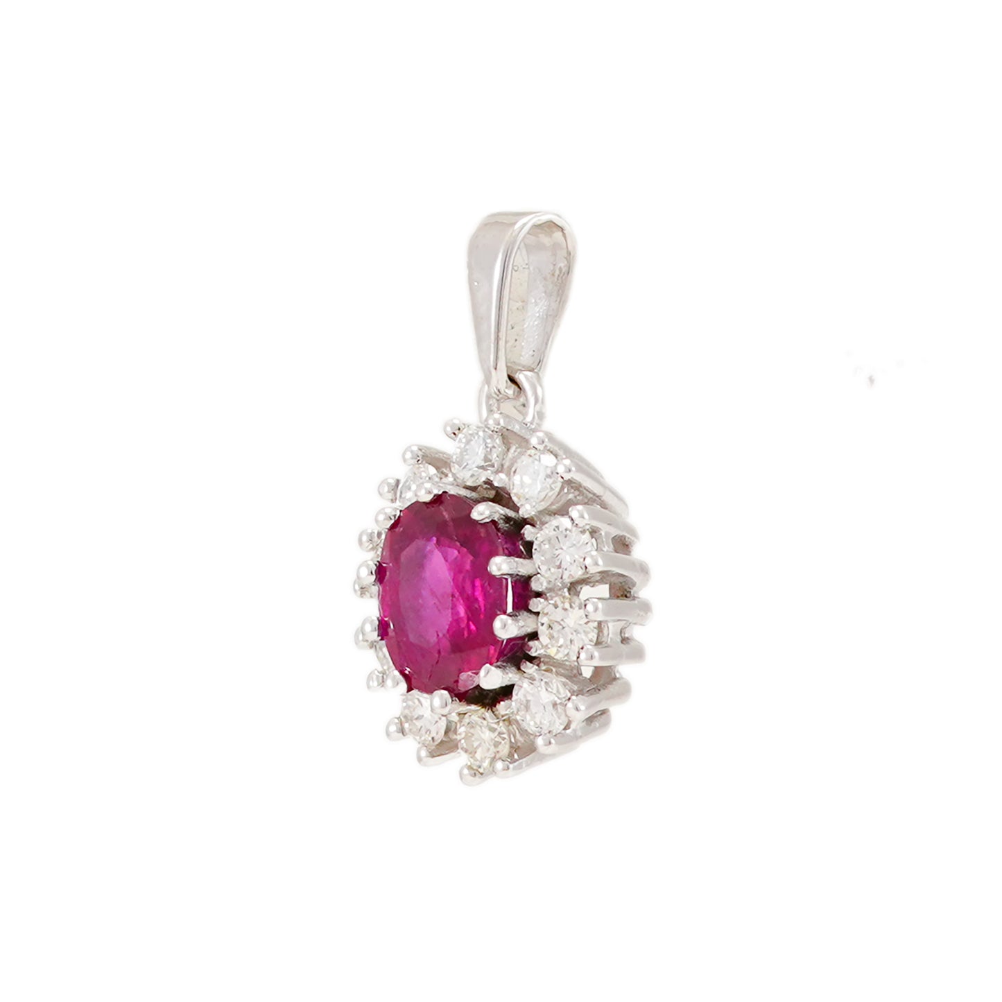Vintage Edelstein entourage Anhänger Rubin Diamant Weißgold 14K Damenschmuck