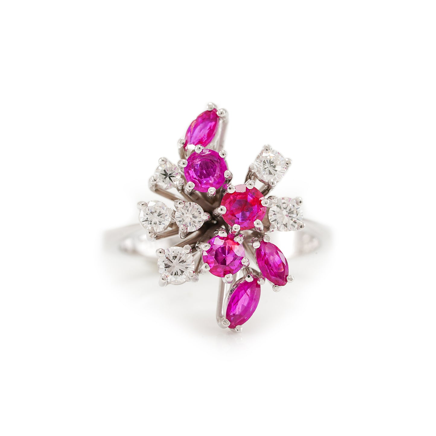 Vintage Edelstein Ring Rubin Diamant Weißgold 14K Damenschmuck Goldring Brilantring