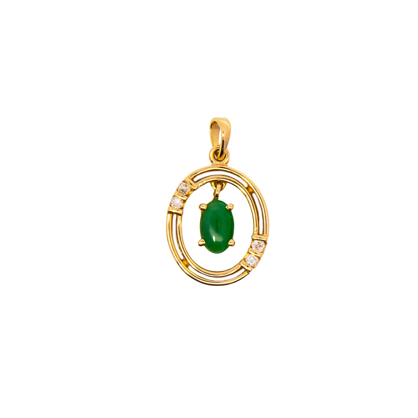Vintage Edelsteinanhänger Smaragd Diamant Gelbgold 18K Damenschmuck Kettenanhänger