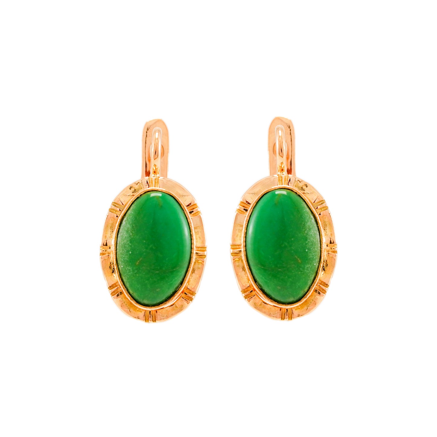vintage Malachit Creolen Rosegold 14K 583 Rotgold Edelsteinohrringe Goldohrringe russisch