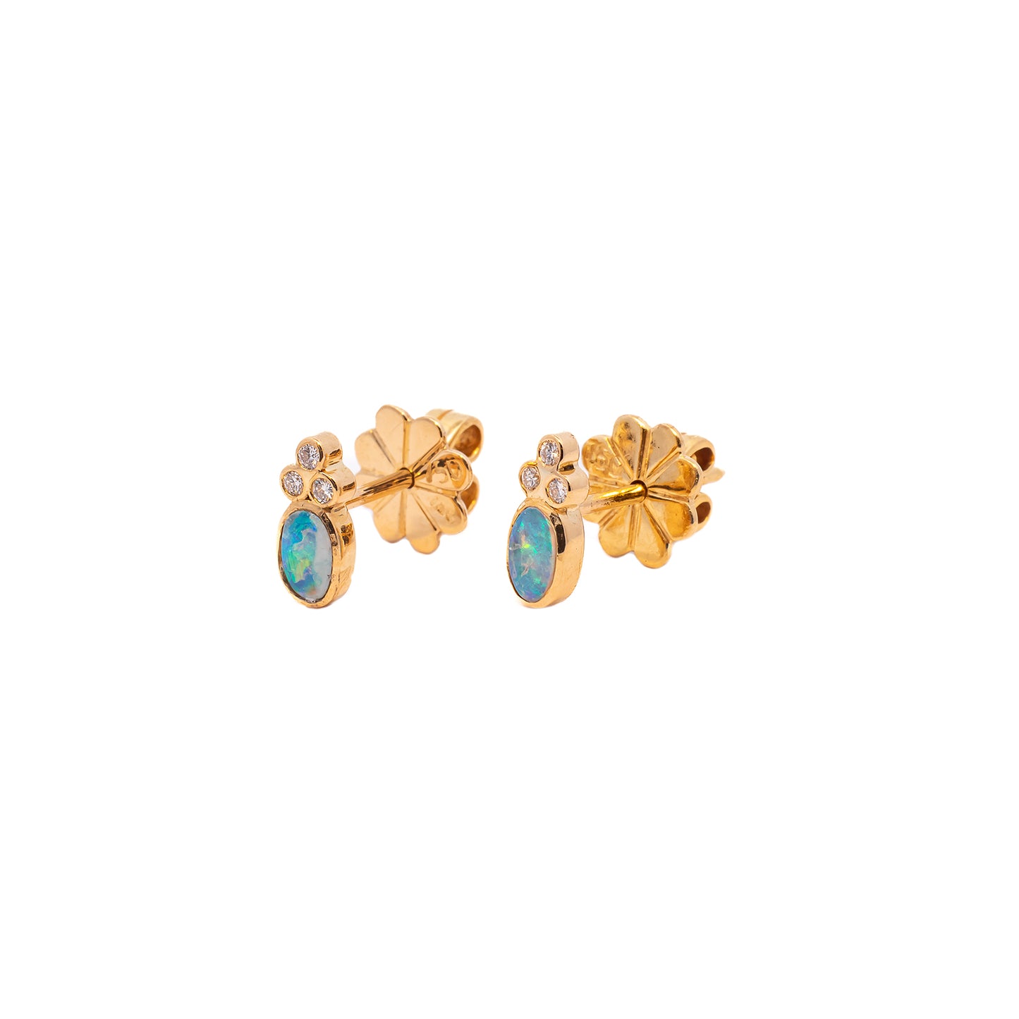 Vintage Ohrstecker Diamant Opal Gelbgold 18K 750 Damenschmuck Goldohrringe